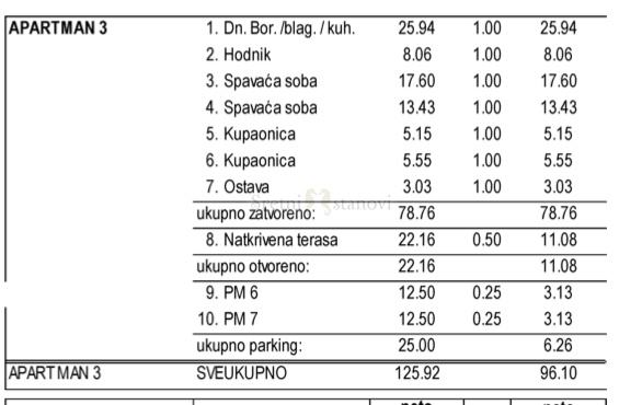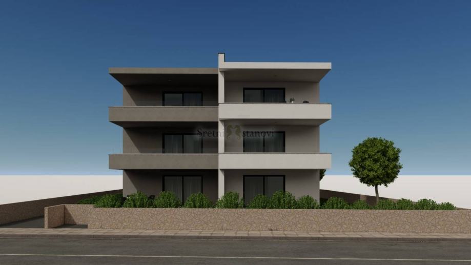NOVALJA , moderna novogradnja sa ukupno 8 apartmana na zapadnom djelu Novalje, Gaj, na svega 10 minuta laganog hoda do centra grada i 5 minuta do mora i plaže (200 metara od mora). Pogled na more. Zgradu čine 3 etaže; prizemlje i 2 kata. Na svakom katu su po dva apartmana sa dvije spavaće sobe i dvije kupaone. Svi stanovi su klimatizirani kvalitetnim klima uređajima za grijanje i hlađenje koji su smješteni u dnevnom boravku i svakoj sobi a u kupaonama je ugrađeno podno grijanje. Korištena je i ugrađena vrhunska tehnologija i oprema kako vanjska tako i unutarnja. Svaki stan ima svoja 2 vanjska parkirna mjesta. Čisto vlasništvo i uredni papiri gradnje.
