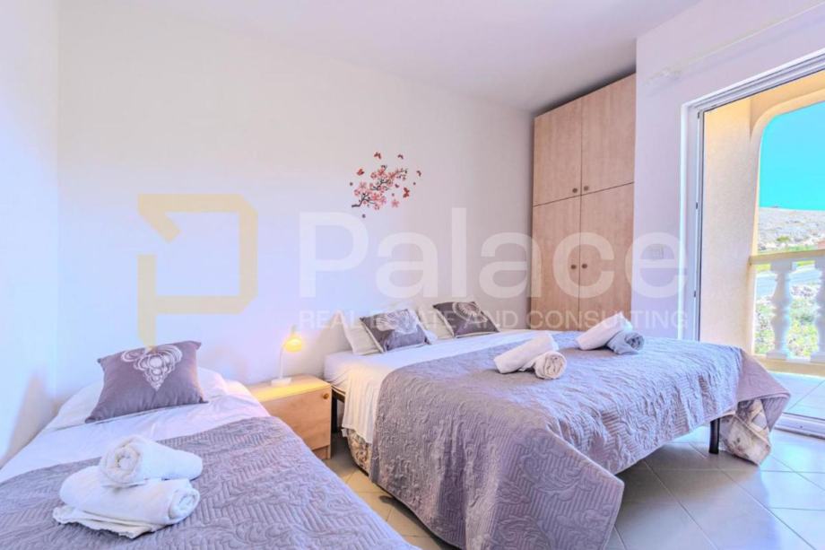 Posebna vrijednost ove nekretnine je privatni pristup plaži – vlastiti put vodi izravno do uređene, sigurne i čiste plaže, savršene za djecu i opušteno uživanje u moru. Stan se prostire na ukupno 61,2 m² korisne površine, a sastoji se od dvije spavaće sobe, kupaonice, prostranog dnevnog boravka s blagovaonicom i kuhinjom i loggie. Iz dnevnog dijela izlazi se na balkon s pogledom na more.