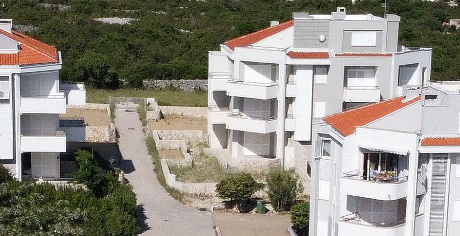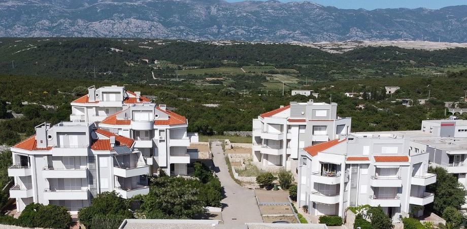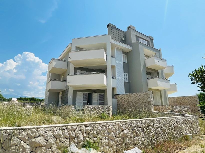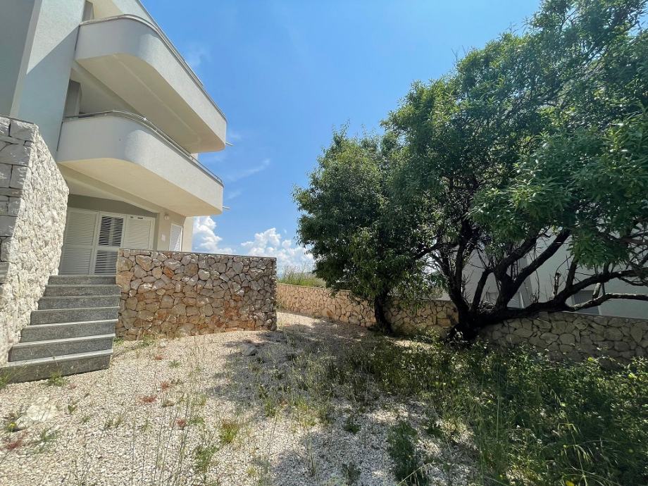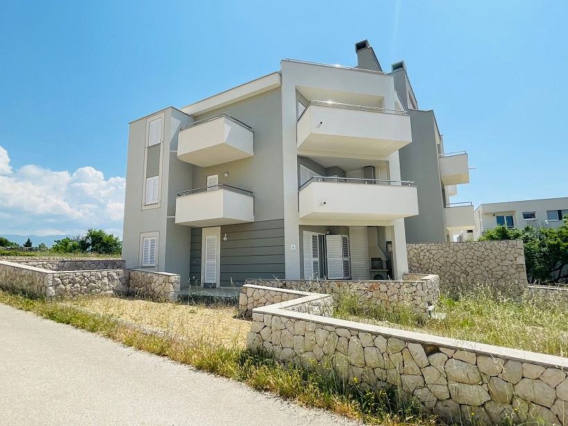 Prodaje se trosobni apartman (S1) ukupne površine 87,23 m2 s velikom terasom i okućnicom u Novalji.