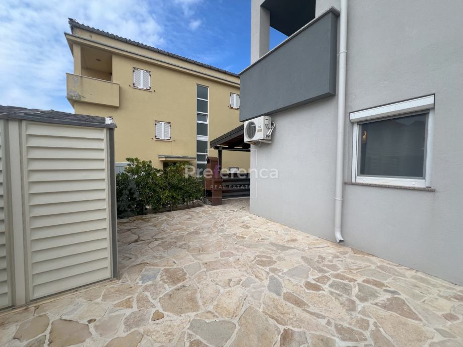 Iznajmljuje se 2-sobni stan, površine 40 m2, smješten u prizemlju zgrade izgrađene 2007. godine, u prekrasnoj Novalji.
