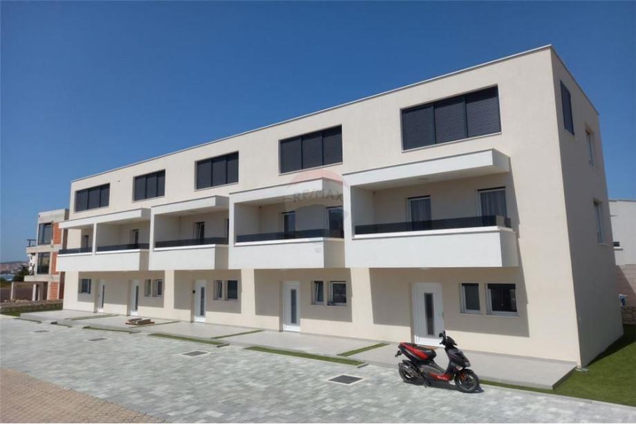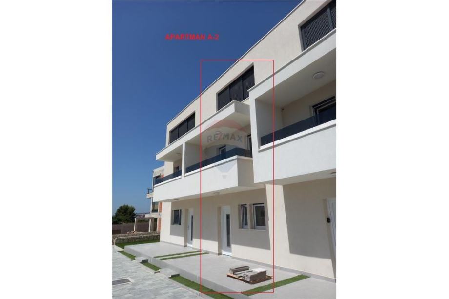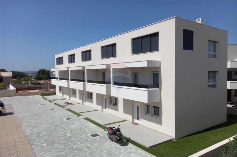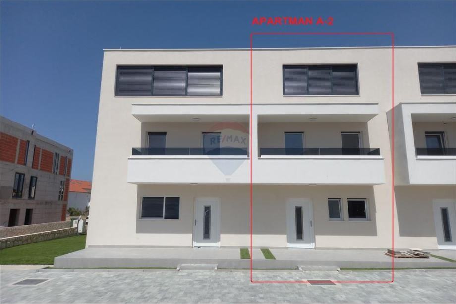 Prodaje se troetažni stran u Novalji u blizini gradske plaže Vrtić. Apartman A-2 ukupne veličine 108.43 m2 nalazi se u stambenoj zgradi sa ukupno 5 jedinica. Projektirano u kategoriji 4*, na tri etaže s vlastitim vrtom. Svi prostori hlađeni/grijani putem dizalica topline. Na lođi na drugom katu izvedena priprema za postavu masažnog bazena.