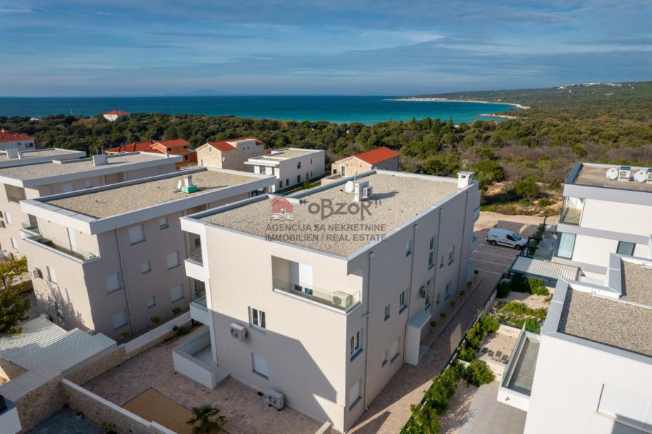APARTMAN, OTOK PAG, NOVALJA, MODERNA NOVOGRADNJA, POGLED NA MORE, BLIZINA PLAŽE