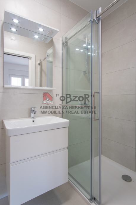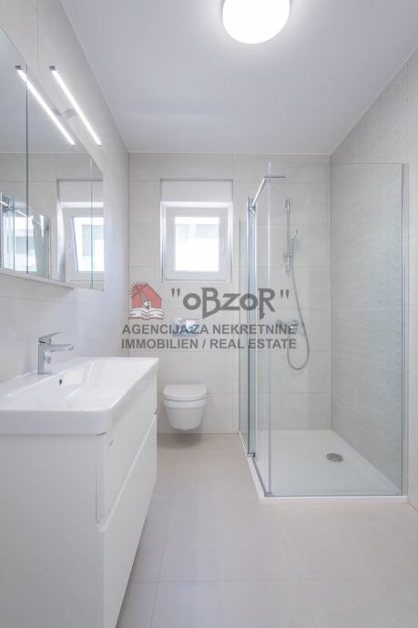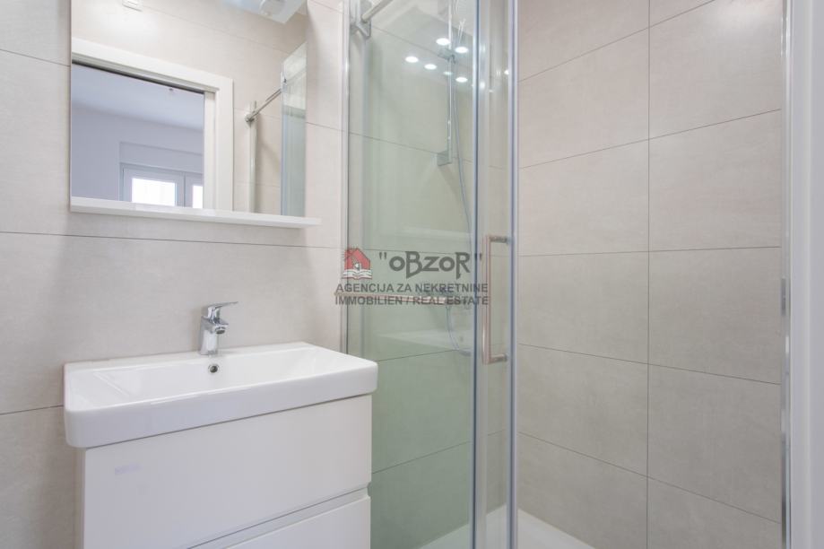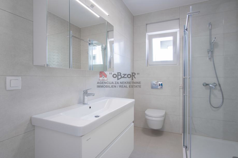 *KUPAONE: podno grijanje, kvalitetna keramika 120X40, walk in stakleni tuševi, nadžbukne mješalice i gljiva tuševa, električni bojler, priprema za električni kupaonski radijator, rolete na električno podizanje, nadgradni umivaonik i slavina, SIKA hidroizolacija, GEBERIT vodokotilići