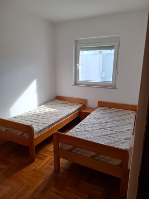 Prodaje se potpuno namješten trosoban stan na prvom katu stambene zgrade u Novalji. Stan ima balkon i vanjsko nenatkriveno parkirno mjesto, te pogled na more. Stan je udaljen od mora 250m. Agencijska provizija je
