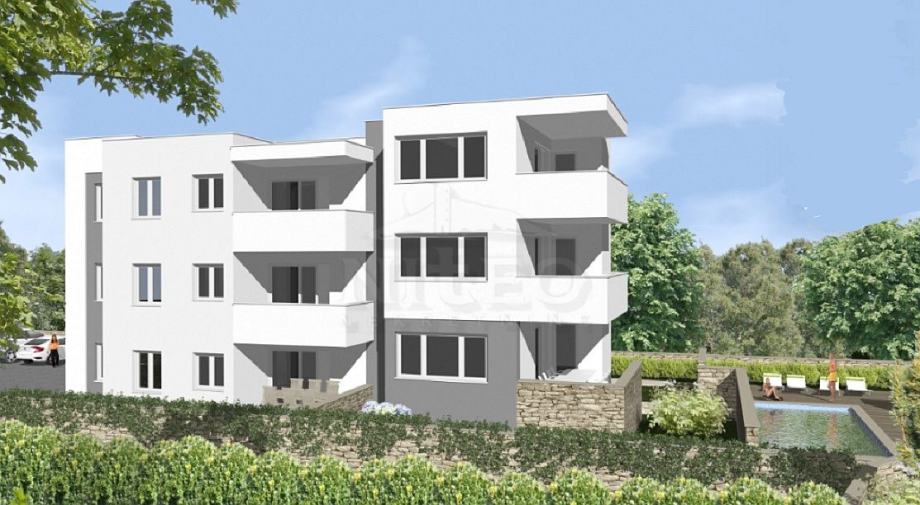 Prodaje se 3-sobni apartman (A1) obračunske površine 59,85 m2 na I katu novogradnje sa zajedničkim bazenom u Novalji, Zadarska ulica.