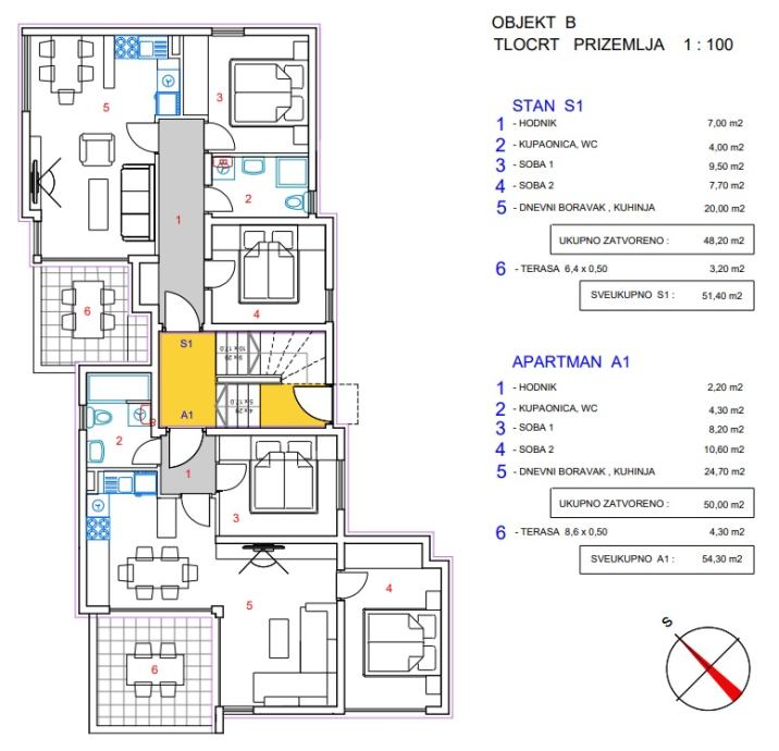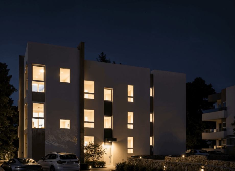 Prodaje se trosobni apartman (A1 – objekt B) obračunske površine 54,30 m2 u prizemlju novogradnje na izuzetnoj lokaciji, II red do mora, Ulica Put Lokvice.