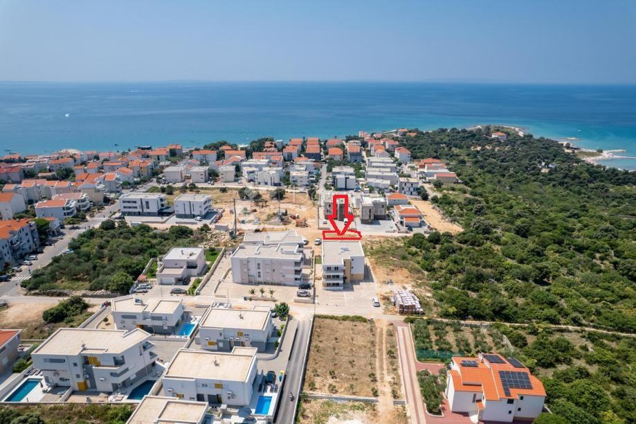Prodaje se trosobni apartman (S2) ukupne bruto površine 88,60 m2 na I katu novogradnje s pogledom na more u Novalji, predio Mlaji.