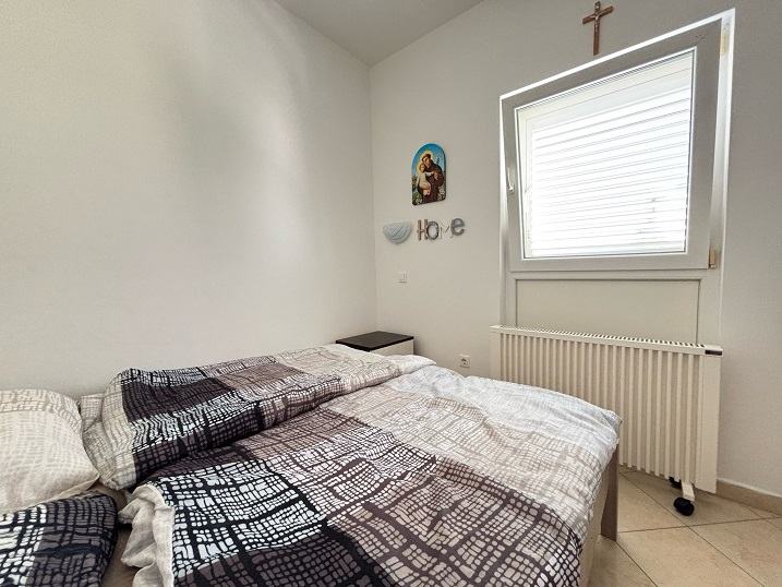 Sastoji se od dnevnog boravka s kuhinjom i blagovaonom, 2 sobe, kupaonice s wc-om i terase s pogledom na more i Novalju.