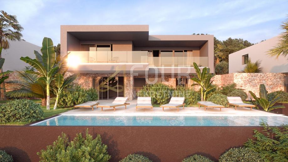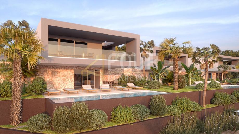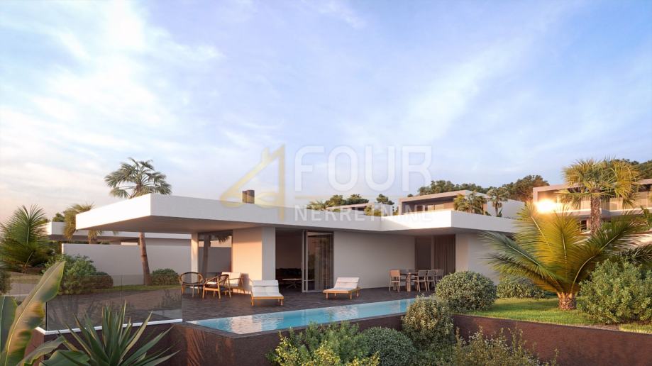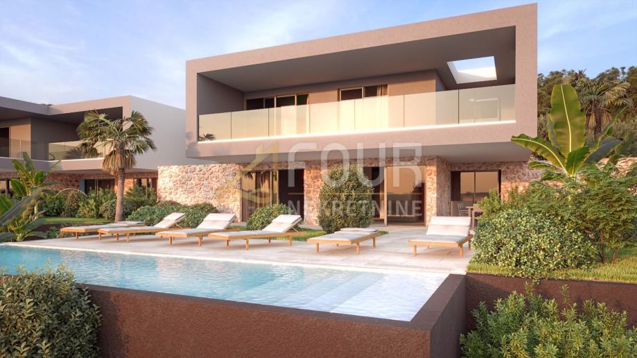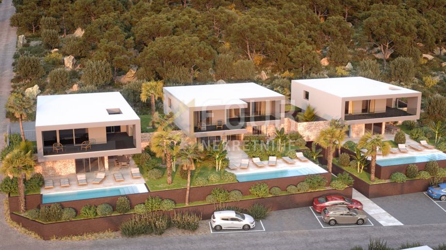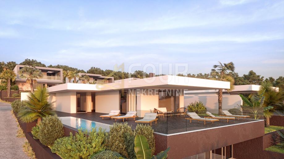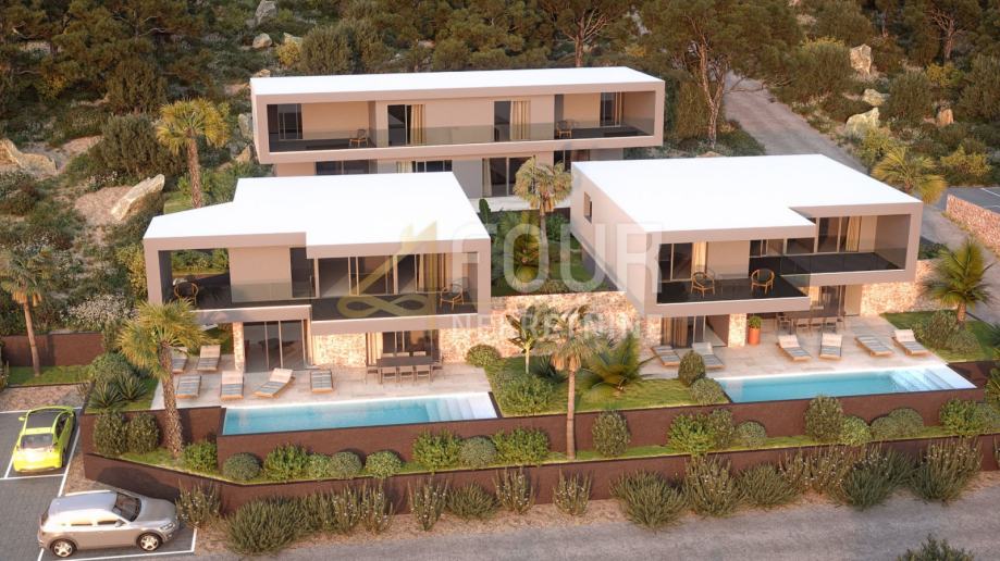 Vila u fazi izgradnje prostire se na dvije etaže, prizemlje i prvi kat ukupne površine 388.50 m2, od čega prizemlje ukupne površine 143.50 m2 i prvi kat ukupne površine 245 m2. Ova prekrasna vila sastoji se od tri spavaće sobe, svaka sa svojom kupaonicom te izlazom na prostranu terasu. U prizemlju se nalazi i hodnik sa ostavom te stubište koje vodi na prvi kat.