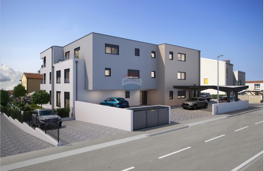 Smješten na prvom katu moderne zgrade od osam luksuznih stanova u izgradnji.