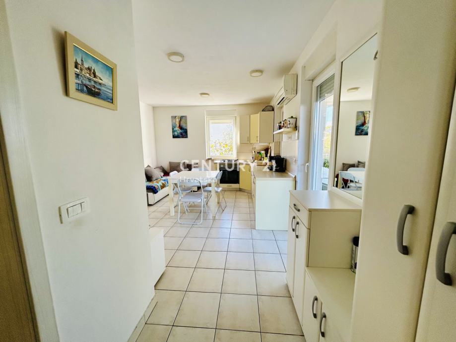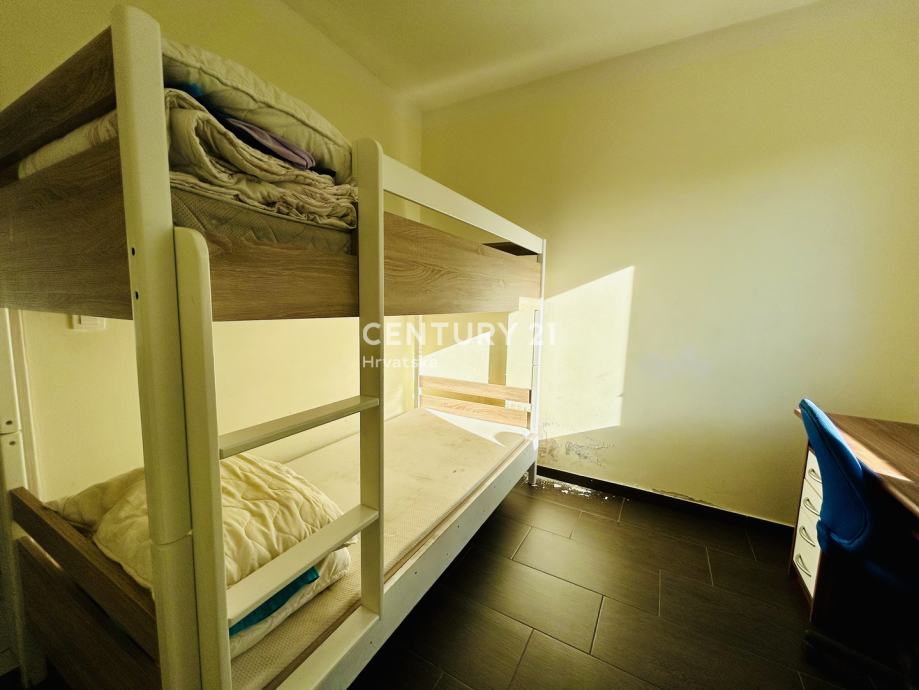 Interijer stana opremljen je modernom kuhinjom s aparatima, radnim stolom, perilicom posuđa i rublja, TV-om i krevetima, što osigurava funkcionalnost i udobnost. Grijanje na struju i klima uređaj osiguravaju ugodnu temperaturu tijekom cijele godine.