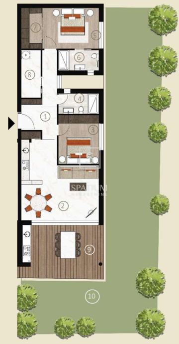 NOVIGRAD, u ponudi imamo stan smješten u prizemlju zgrade koja se sastoji od ukupno 8 stanova.