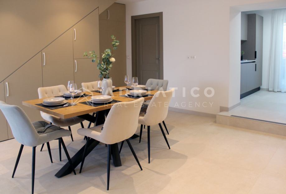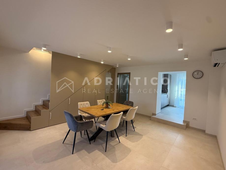 U prodaji je moderna kuća ukupne površine 135 m², smještena na parceli od 60 m², s uređenim vrtom od 30 m² i natkrivenom terasom površine 25 m². Nekretnina se prostire na četiri etaže i raspolaže s ukupno četiri sobe, od kojih su tri spavaće, te tri kupaonice. Udaljena je svega 3 km od centra grada i 3 km od mora, što je čini izvrsnim izborom za miran obiteljski život, ali i kao atraktivnu investiciju za turistički najam. Cijena kuće iznosi 430.000 eura.