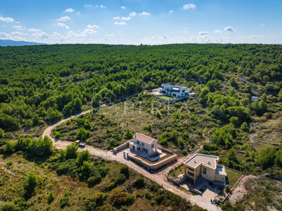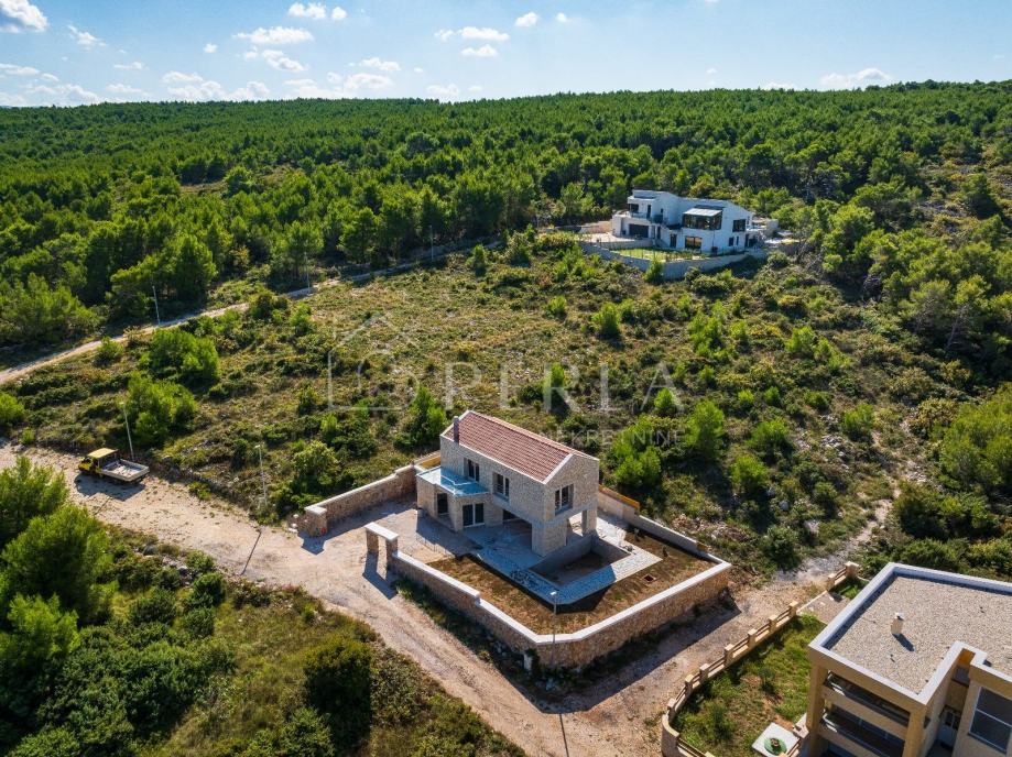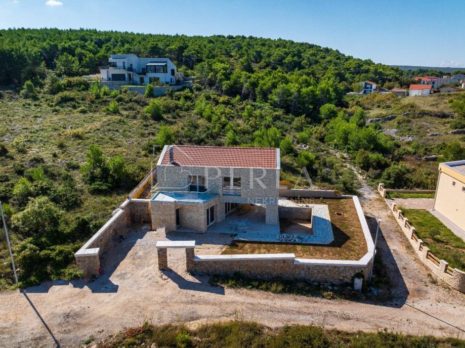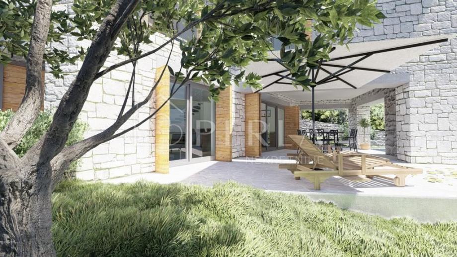 Vanjska kamena fasada, kvalitetna vanjska stolarija i krovište, uređenje okoliša i vanjskih kamenih ogradnih zidova u potpunosti odražavaju dalmatinski štih.