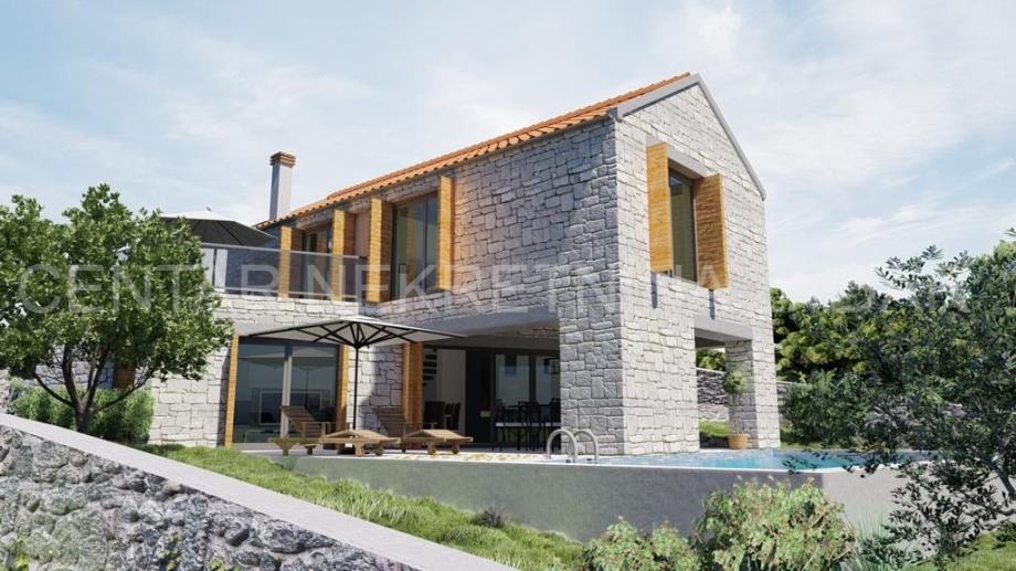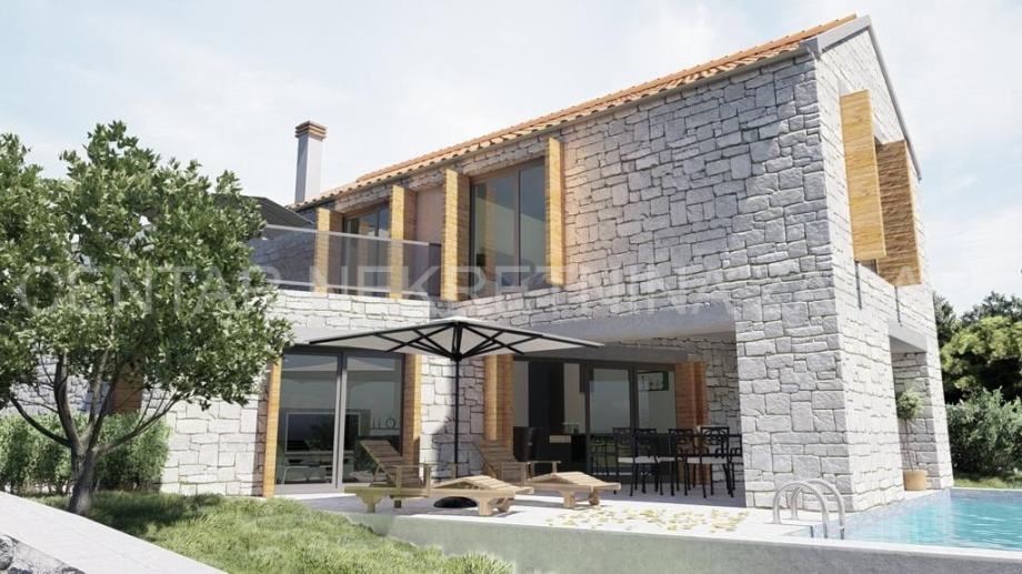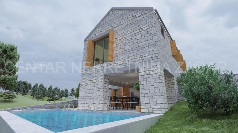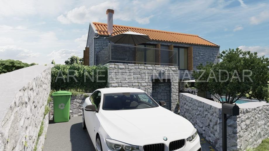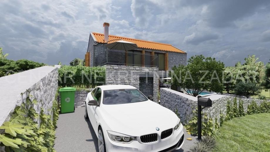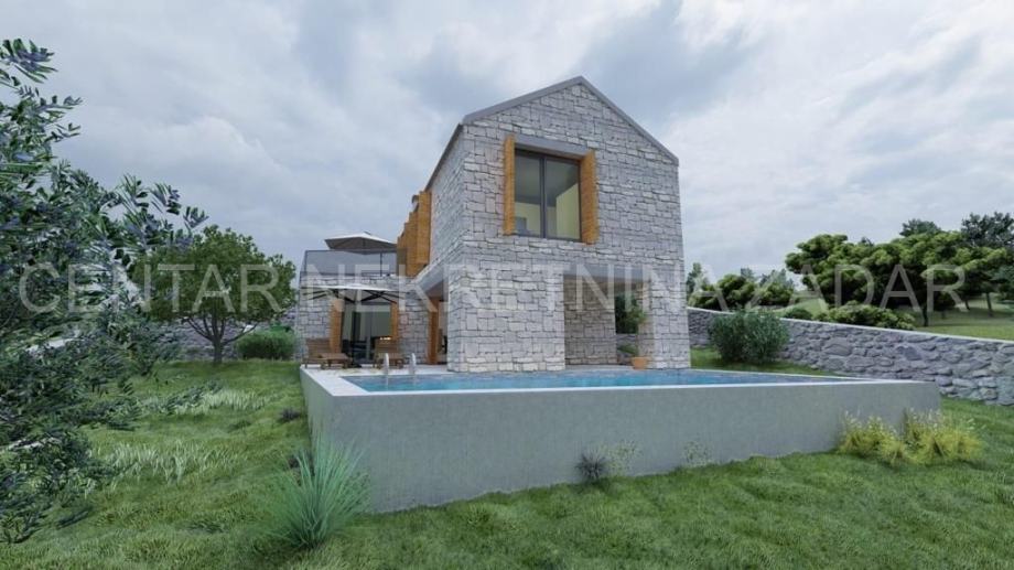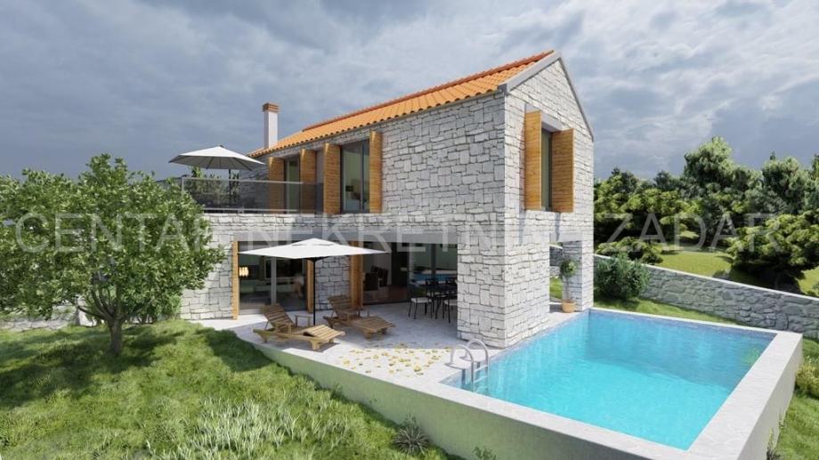 Kamena villa u izgradnji u Novigradu, oko 30 km udaljenom od Zadra, u blizini mora, sa bazenom i panoramskim pogledom na more. Villa je u izgradnji, a sastoji se od prizemlja i kata. Prizemlje sadrži ulazni dio, kuhinju, blagovaonicu i dnevni boravak s pogledom na more i vanjski bazen, te zasebnitoalet. Iz dnevnog boravka izlazi se na natkrivenu terasu s vanjskom ljetnom kuhinjom. S terase se pristupa vanjskom bazenu površine 32 m2 te sunčalištu. Prizemlje je unutarnjim stepeništem povezano s prvim katom na kojem se nalaze zajednička kupaonica i tri spavaće sobe, od kojih je jedna master spavaća soba s vlastitom kupaonicom i prostranom terasom.Villa ima ukupno 154 m2 stambenog prostora, a izgrađena je na zemljištu veličine 523 m2.Fasada je termoizolirana te dodatno obložena prirodnim kamenom. Dizajnirana je u tradicionalnom dalmatinskom stilu. Okoliš će biti uređen travom i mediteranskim raslinjem. Prekrasan pogled na more i blizina mora čine ovu nekretninu odličnim odabirom, kako za odmor tako i za investiciju u turističko iznajmljivanje koje budućem vlasniku može donijeti značajan prihod.