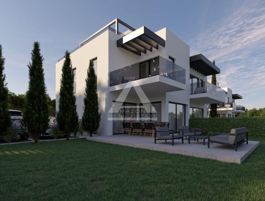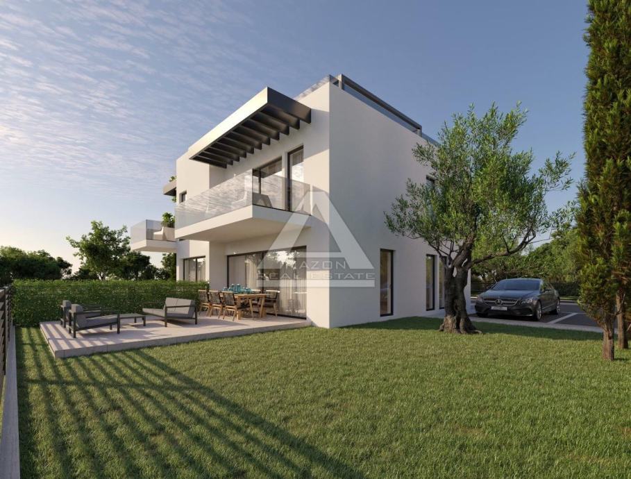 Novigrad okolica - novogradnja, dvojne kuće, izgrađene 2024 godine. Svaka kuća se sastoji od prizemlja gdje su kuhinja, dnevni boravak, terasa, toalet, a na katu su tri sobe, dvije kupaone i terasa, te još krovna terasa sa koje se pruža pogled na more. U dvorištu je vrt i dva parking mjesta.