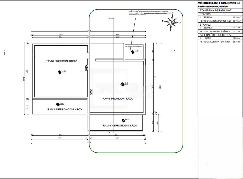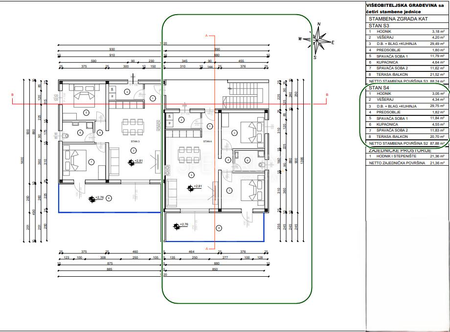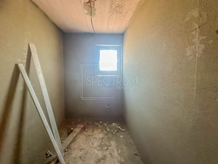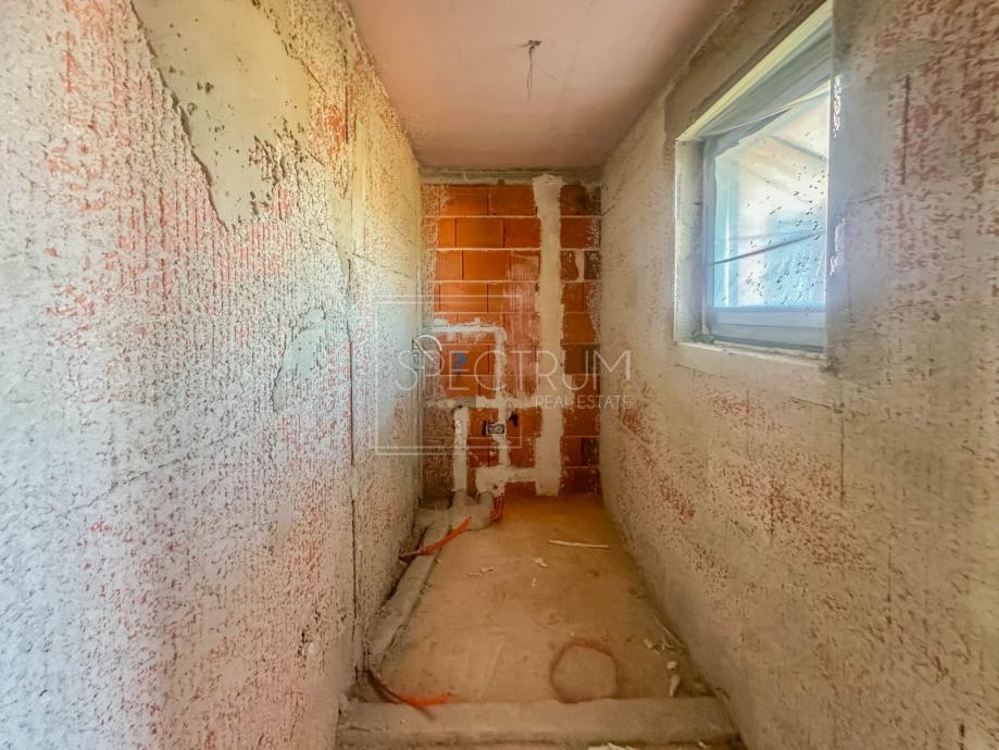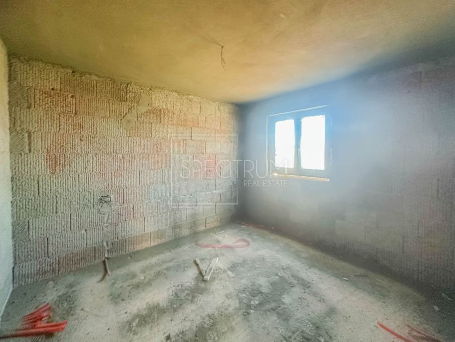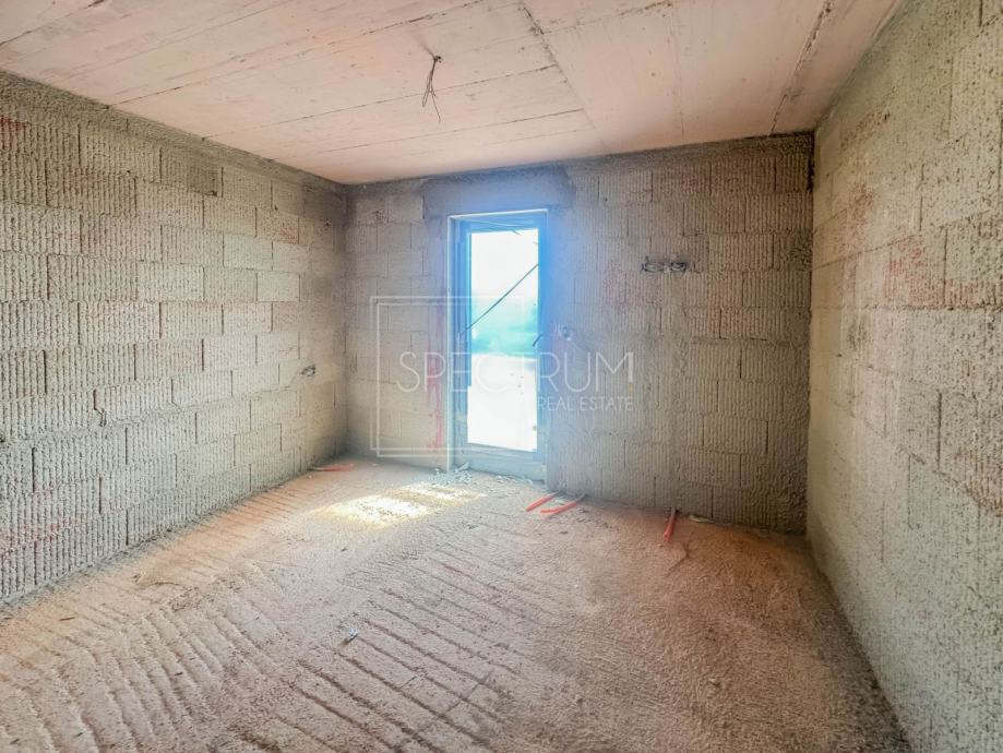 Stan se nalazi na 1.katu novoizgrađene manje stambene zgrade sa 4 stambene jedinice. Bruto površina stambenog prostora (bez krovne terase) iznosi 87.88 m2, dok je neto površina (bez krovne terase) 77.36 m2. Uzimajući u obzir i krovnu terasu, dolazi se do neto površine 95.38 m2. Stan se sastoji ulaznog hodnika, open space dnevnog boravka sa kuhinjom i blagovaonicom, predsoblja, 2 spavaće sobe, kupaonice, ostave/praonice i natkrivene prostrane terase, idealne za uživanje i druženje na otvorenome. U vlasništvu stana je i velika krovna terasa sa koje se pruža pogled na more i na prirodu. Raspored prostorija u stanu je odličan, te je praktički svaki dio stana iskorišten. Stan se grije putem klima uređaja i podnog grijanja. Stan se prodaje u fazi ključ u ruke (završeni podovi i sanitarije, bez namještaja). U vlasništvu stana je i parking koji se nalazi odmah pored zgrade.