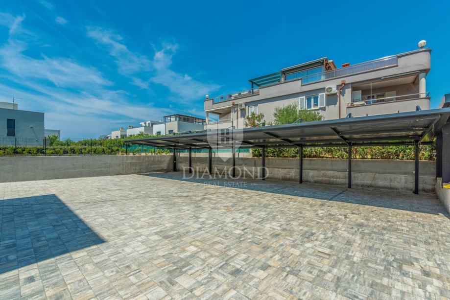 Ovaj prekrasan stan u svojih 112,82 m2 nudi prostrani dnevni boravak koji se sastoji od kuhinje, blagovaonice i udobnog dnevnog boravka, stvarajući savršeno mjesto za druženje i opuštanje. Dodatno, stan ima dvije prostrane spavaće sobe, svaka sa svojom kupaonicom za dodatnu privatnost i udobnost. Iz dnevnog boravka se izlazi na prekrasnu veliku natkrivenu terasu s ljetnom kuhinjom, idealnu za uživanje na svježem zraku i opuštanje na otvorenom.