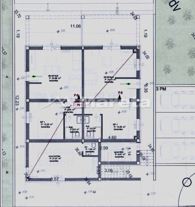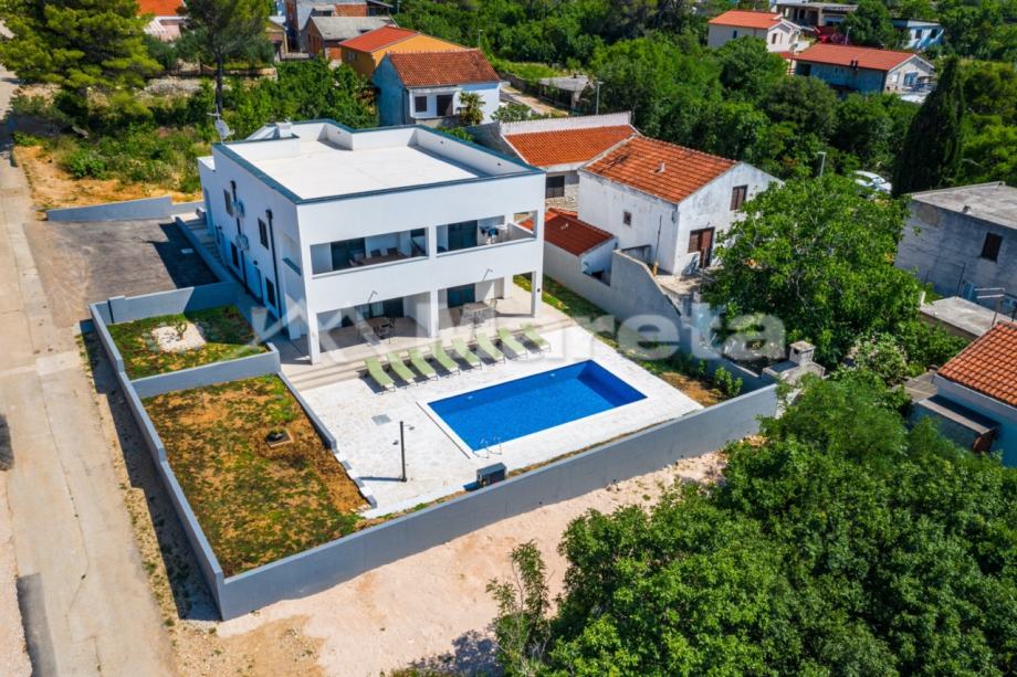Vila tlocrtne površine 185 m2 s bazenom površine od 32 m2 sagrađena je na zemljištu od 672 m2.