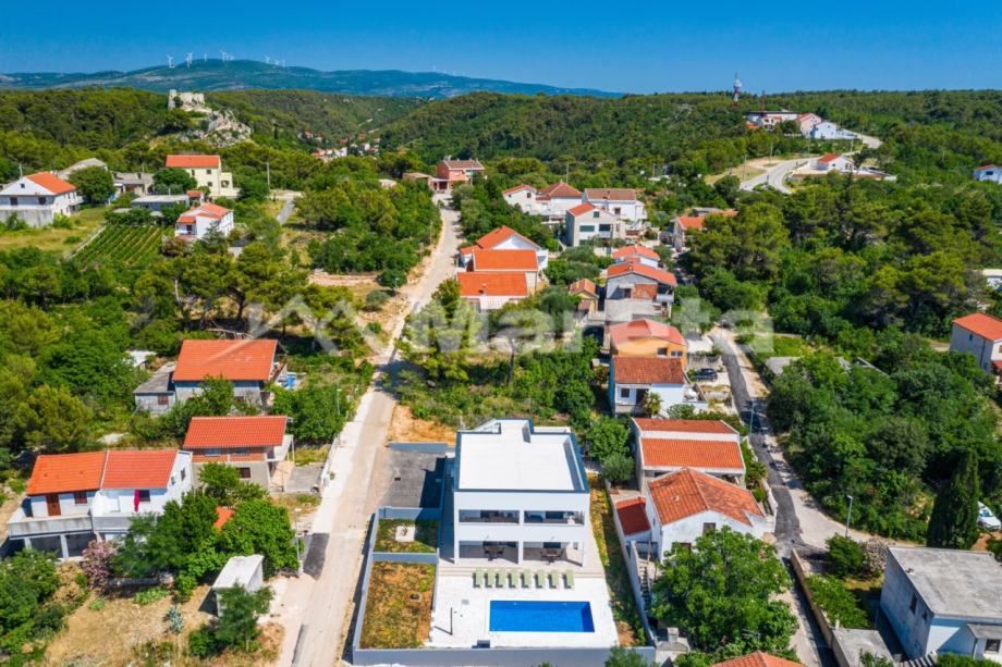 Prodaje se luksuzna apartmanska vila udaljena otprilike 200m od mora s tri apratmana i vanjskim bazenom.