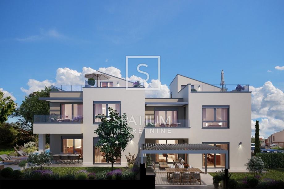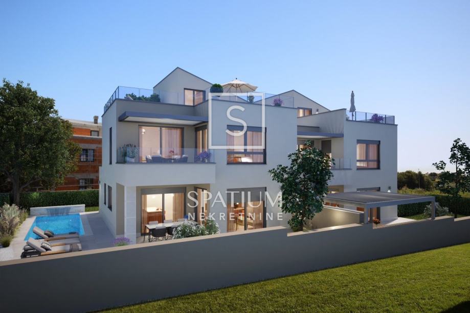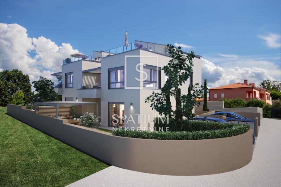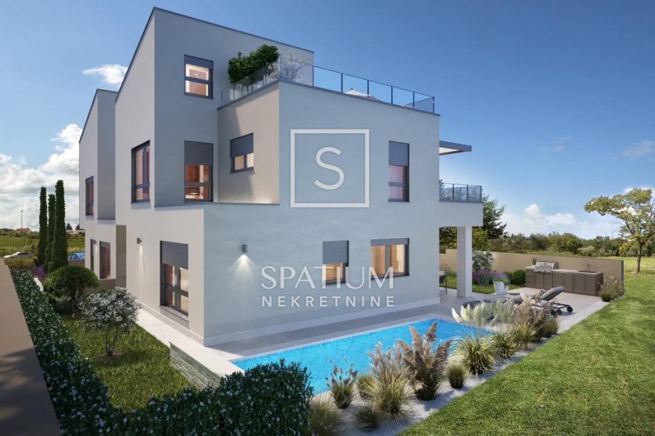 NOVIGRAD, MODERNA DVOJNICA S POGLEDOM NA MORE I BAZENOM (prodaja)