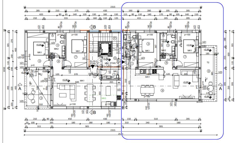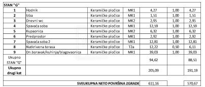 Stan se nalazi na 2.katu stambene zgrade sa 7 stambenih jedinica. Površina stana iznosi 94.62 m2. Stan se sastoji od dnevnog boravka sa kuhinjom i blagovaonicom open space koncepta, 2 spavaće sobe, kupaonice, wc-a, hodnika i natkrivene terase. Sa natkrivene terase pruža se lijepi pogled na more i na grad Novigrad. Stan se grije putem toplinske pumpe te podnog grijanja u kupaonici. Stan se prodaje u fazi ključ u ruke (završeni podovi i sanitarije, bez namještaja). U ovoj fazi kupac ima mogućnost odabira podova i sanitarija. Zgrada ima lift. U vlasništvu stana je i parking.