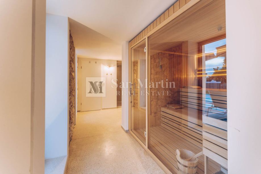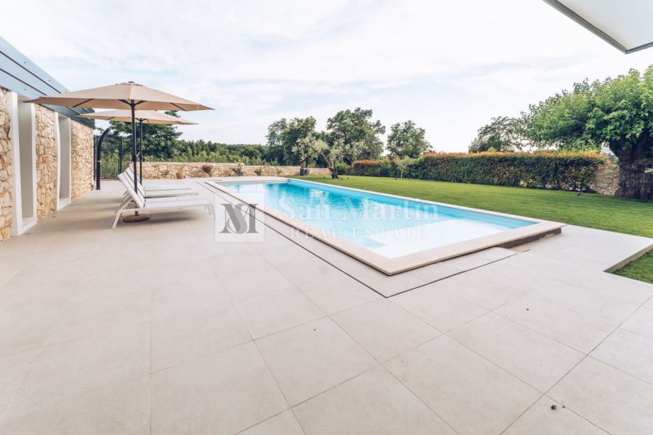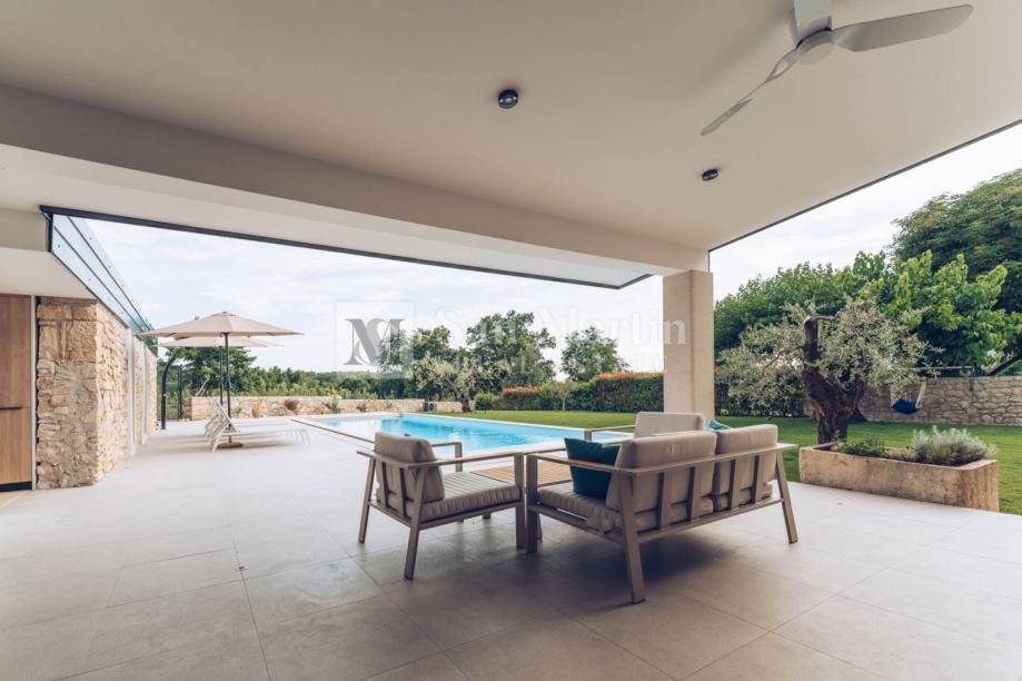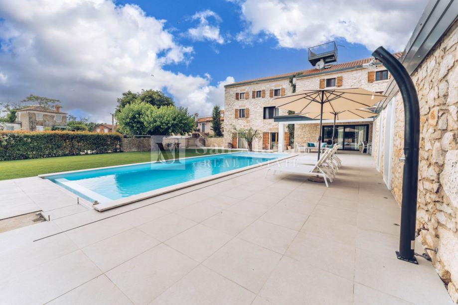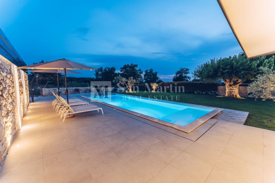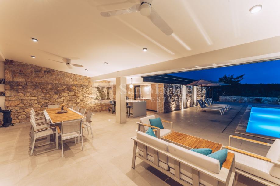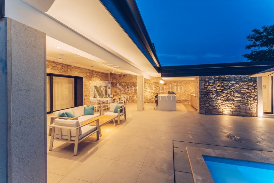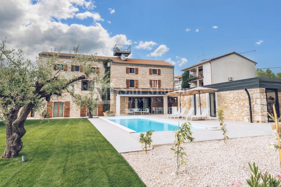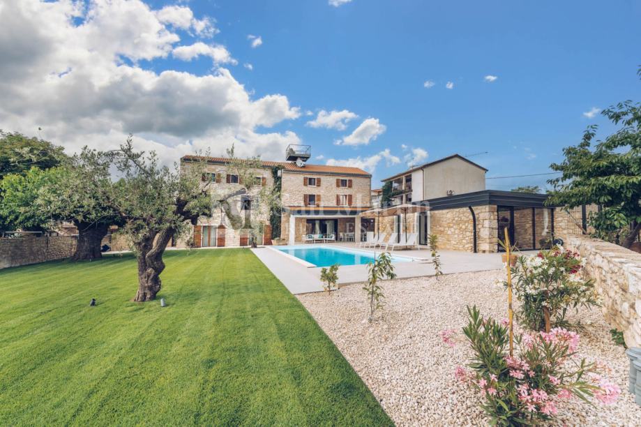 Dnevni prostor kuće vodi u prekrasan vrt u kojem raste dvjesto godina staro stablo murve te dvije stoljetne masline. Tu je grijani bazen te relax zona sa saunom.