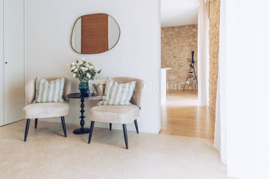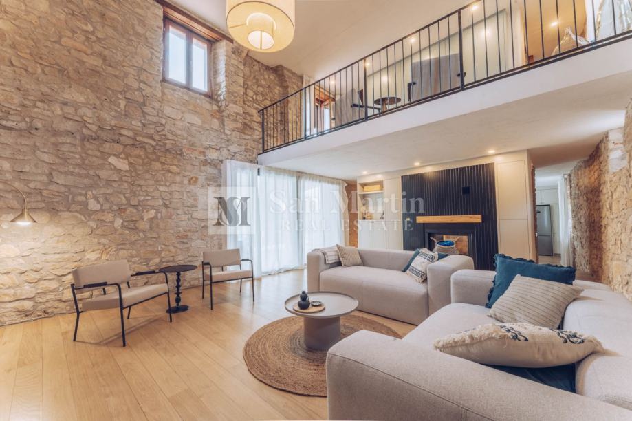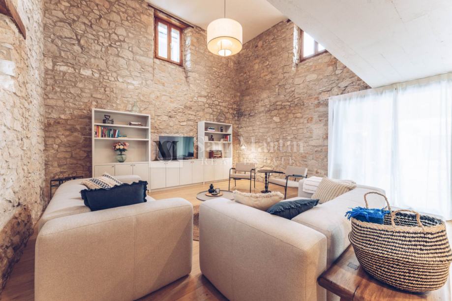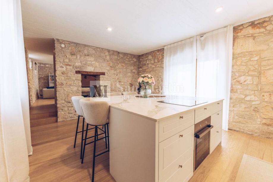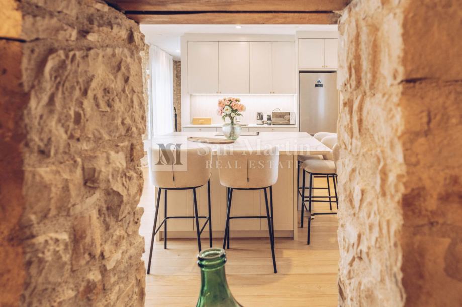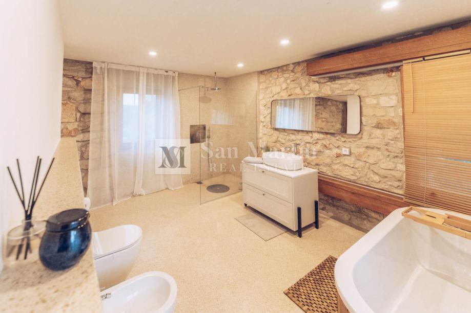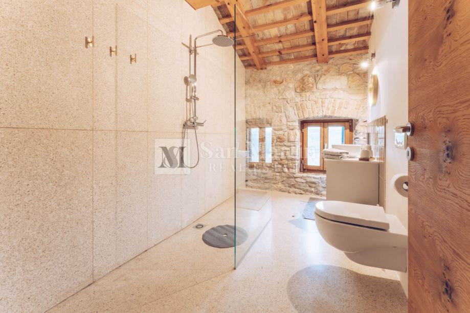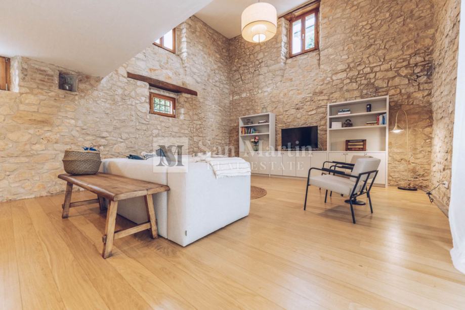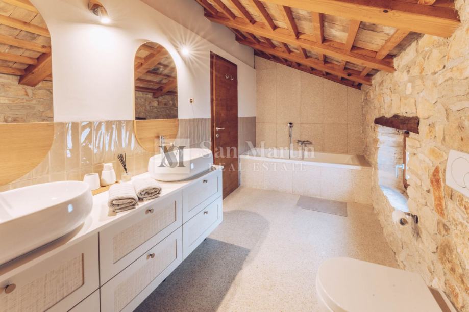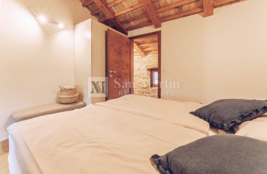 U prizemlju nekretnine smjestili su se prostrani dnevni boravak s kaminom, kuhinja i blagovaona. Na katu je smještena velika spavaća soba s vlastitom kupaonom. Dok u visokom potkrovlju kamene ljepotice nalaze se još 3 spavaće sobe te 2 kupaone.