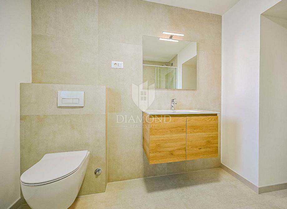 Kuća se prostire na četiri etaže, a svaki kat nosi svoj karakter i funkcionalnost, pažljivo osmišljenu za udoban boravak tijekom cijele godine. Već pri ulasku u prizemlje dočekuje vas ugodan prostor s kuhinjom i blagovaonicom, te moderno uređena kupaonica. Iz kuhinje se izlazi na natkrivenu terasu površine 25 m². U prostoru prizemlja ugrađen je sustav električnog podnog grijanja, što osigurava ravnomjernu raspodjelu topline i optimalnu ugodnost boravka. Terasa je opremljena pomičnom pergolom i ljetnom kuhinjom, s vanjskim tušem i hidromasažnom kadom kapaciteta 5 osoba.