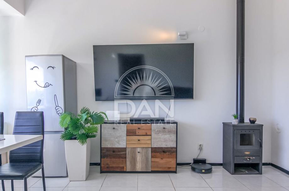 Stanu pripada i malo vanjsko spremište. Ugrađena su troslojna stakla, protuprovalna ulazna vrata, a grijanje je riješeno putem infracrvenih panela jake snage, peći na drva ili klime. Stan ima nisku potrošnju električne energije.