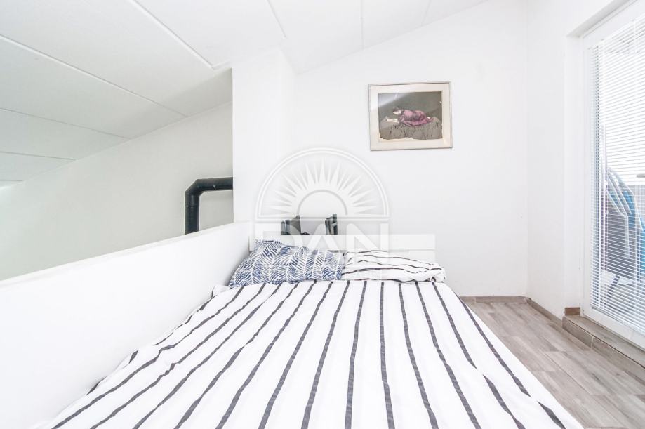 Stan se sastoji od kuhinje, prostranog dnevnog boravka s blagovaonicom u open-space konceptu te jedne spavaće sobe. Na drugoj etaži nalazi se još jedna spavaća soba s izlazom na terasu s pogledom na more, kao i velika zajednička terasa.