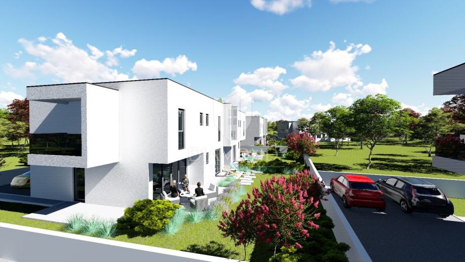 Kuća se proteže na dvije etaže, ukupne površine 150 m2 sa terasama. U prizemlju se nalazi dnevni boravak sa kuhinjom i blagovaonicom otvorenog tipa, 1 spavaća soba sa vlastitom kupaonicom, hodnik te wc sa praonicom. Iz dnevnog boravka se izlazi na natkrivenu terasu sa koje se pristupa okućnici na kojoj se po želji može napraviti i bazen. Na kat se pristupa unutarnjim stepenica na kojem su smještene kupaonica i 3 spavaće sobe svaka sa izlazom na terasu, a od kojih je 1 master spavaća soba sa vlastitom kupaonicom i garderobom. Kuća se gradi od visokokvalitetnih građevinskih materijala. Predviđeno je podno grijanje na struju u kupaonicama te klima uređaji. Pripadaju joj dva parkirna mjesta.