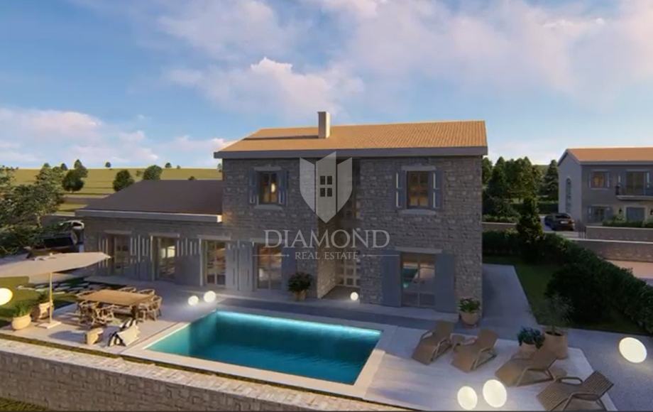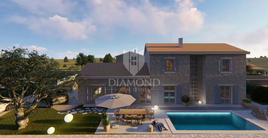 Vila će biti smještena na zemljištu površine 770 m2. Ukupna površina vile će iznositi 194 m2 a protežati će se se na dvije etaže. U prizemlju ove prekrasne vile nalazi će se nalaziti veliki dnevni boravak sa kuhinjom i blagovaonicom otvorenog tipa, 2 spavaće sobe, 2 kupaonice, tehnička soba i hodnik. Iz dnevnog boravka će se izlaziti na natkrivenu terasu sa koje se pristupa uređenoj okućnici na kojoj jje planirana ljetna kuhinja sa kaminom, bazen površine 32 m2 sa sunčalištem i parkiralište. Na kat će se pristupati unutarnjim stepenicama od drva gdje će biti smještene još 2 spavaće sobe svaka sa svojom vlastitom kupaonicom, od kojih je jedna master spavaća soba sa garderobom i terasom sa pogledom na more. Villa će biti građena od vrhunskih materijala u Istarskom stilu sa visokim stropovima i detaljima od kamena i drva. Grijanje je podno na struju a hlađenje na klima uređaje.