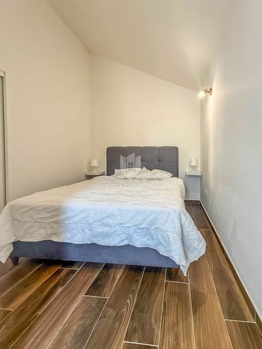 Stan je ukupne površine 32 m2 te se sastoji od dnevnog boravka s kuhinjom, 1 spavaće sobe, kupaonice i terase. Stan je potpuno uređene i opremljen te se kao i takav prodaje. Grijanje i hlađenje je na klima uređaj. Ispred zgrade nalazi se parking za sve stanare.