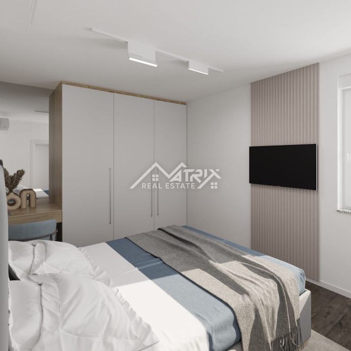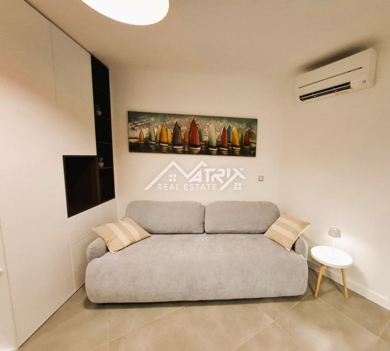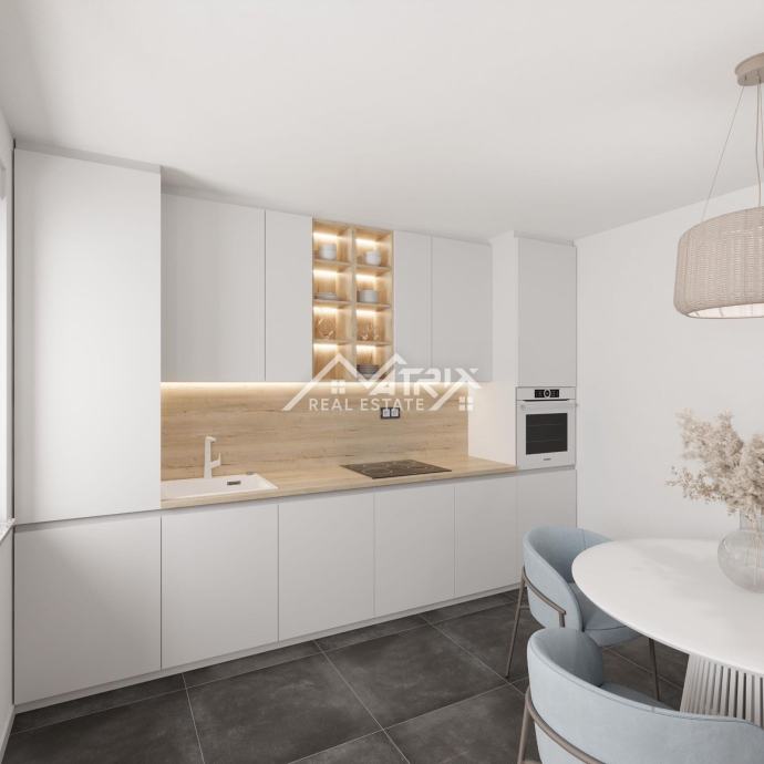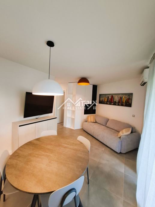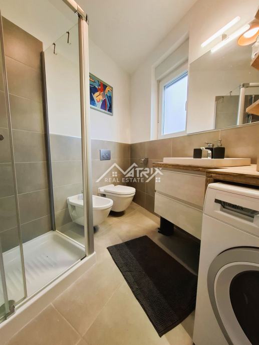 Stan je okružen zelenilom i uređenim okolišem, smješten u mirnoj i atraktivnoj stambenoj zoni s pogledom na more. Kompletna oprema bit će završena do 01.11., što znači da je novi vlasnik spreman odmah uživati u svim pogodnostima koje ova nekretnina pruža.