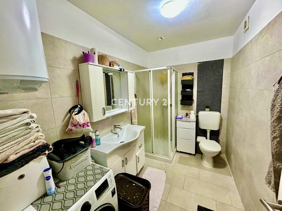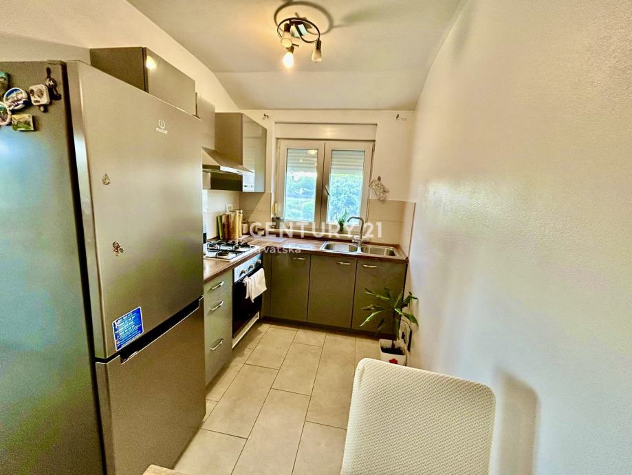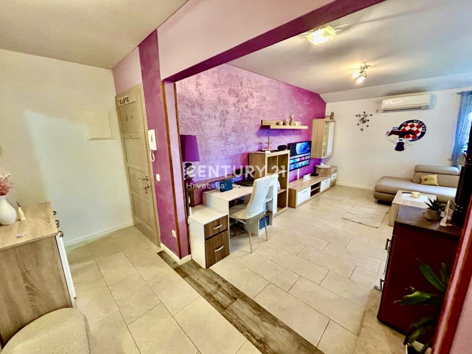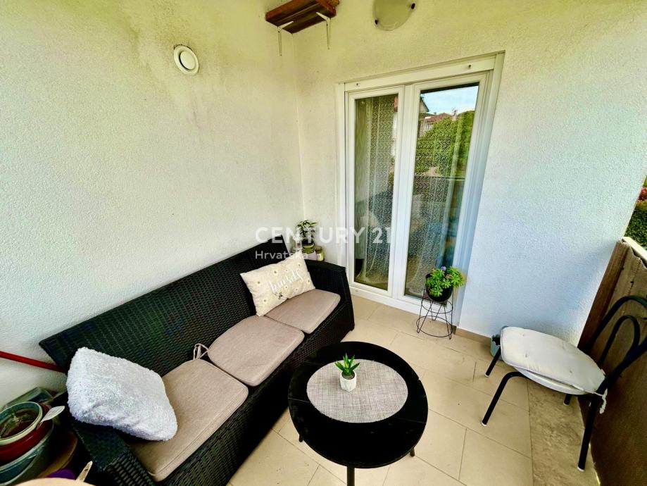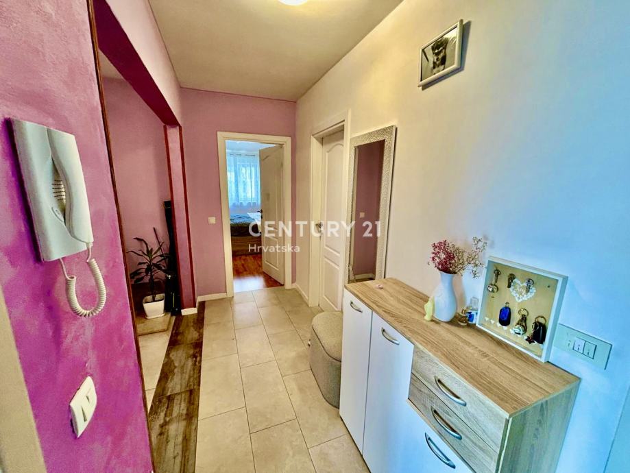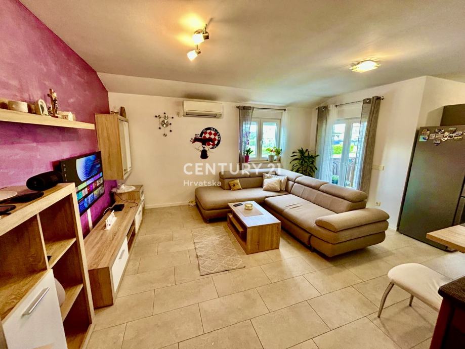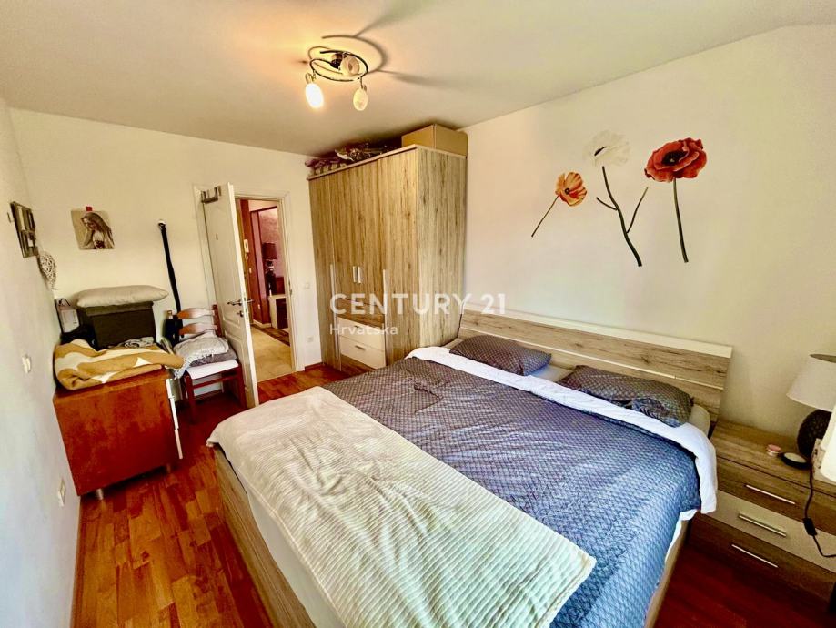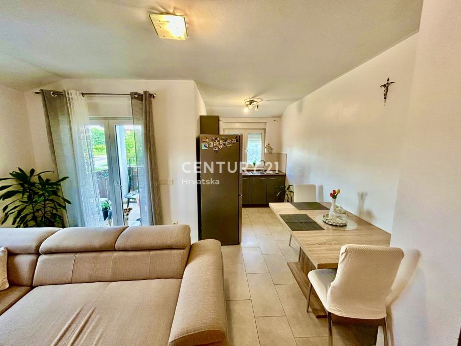 Stan se sastoji ulaznog hodnika/predsoblja, kuhinje, dnevnog boravka i blagavaone, dvije spavaće sobe, kupaonice i prostrane i osunčane terase površine 6 m2, što ga čini praktičnim rješenjem za obitelj ili parove koji traže udoban životni prostor. Orijentacija prema jugozapadu osigurava obilje prirodnog svjetla tijekom cijelog dana te predivan pogled na okolinu. Posebnu vrijednost dodaje balkon veličine 6 m2, idealan za opuštanje ili uživanje u sunčanim danima. Dodatno, stan ima pristup dvorištu i jedno parkirnom mjesto u vlasništvu.