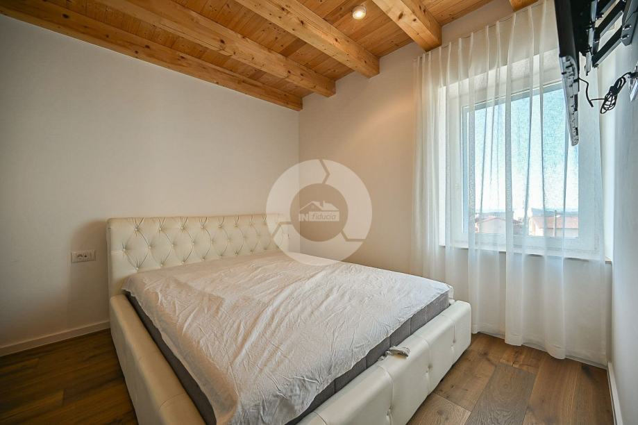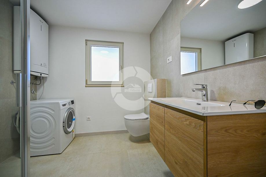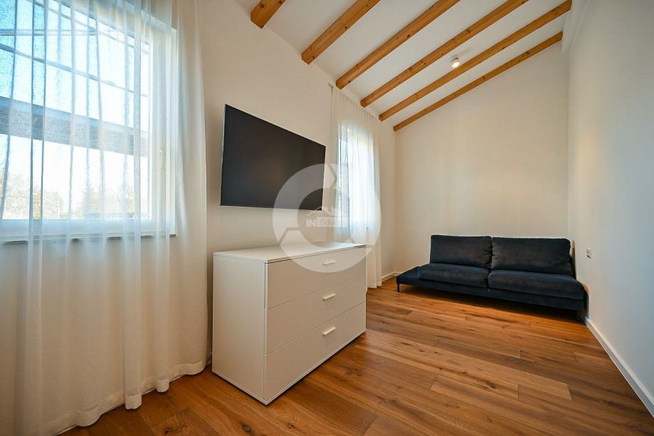 Unutrašnjost kuće opremljena je kuhinjom s aparatima, perilicom posuđa, perilicom rublja, kadom, TV-om, krevetom i radnim stolom, pružajući sve potrebno za udoban život. Grijanje na struju, klima uređaj te podno grijanje osiguravaju ugodnu temperaturu tijekom cijele godine.