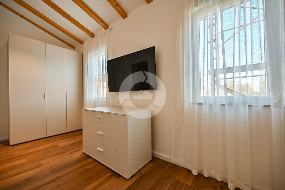 U okolici Novigrada, smjestila se ova šarmantna kuća u nizu, prostirući se na 135 m2. Ovaj kompletno adaptirani dom idealan je za one koji traže spoj tradicionalnog šarma i modernih pogodnosti.