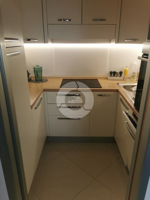 Unutrašnjost stana opremljena je svim potrebnim uređajima uključujući perilicu posuđa, perilicu rublja, kuhinju s aparatima te TV. Dvije spavaće sobe pružaju dovoljno prostora za obitelj ili goste. Grijanje je osigurano putem podnog grijanja i klima uređaja, što omogućuje ugodan boravak tijekom svih godišnjih doba.