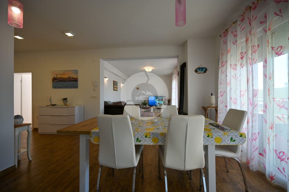 Ovaj stan ističe se suvremenom gradnjom i izvrsnom lokacijom u mirnom okruženju, u neposrednoj blizini mora te prirodnih ljepota koje ovaj kraj nudi. Velika površina stana omogućuje udoban raspored prostorija i pruža obilje dnevnog svjetla zahvaljujući vrlo sunčanoj poziciji.