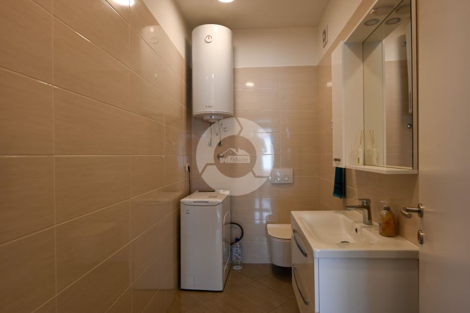 Stan je opremljen modernom kuhinjom s aparatima, perilicom posuđa i perilicom rublja, što dodatno doprinosi udobnosti svakodnevnog života. Za ugodnu temperaturu tijekom cijele godine brinu klima uređaj i podno grijanje. Dodatnu vrijednost pruža i krovna terasa idealna za opuštanje na otvorenom.