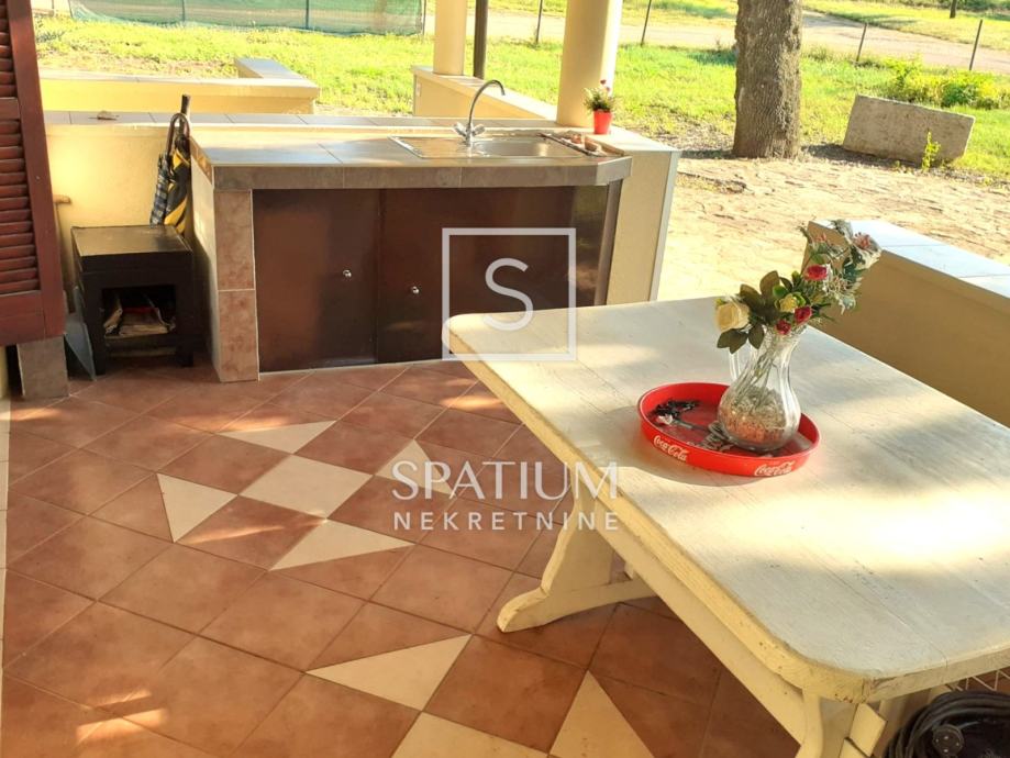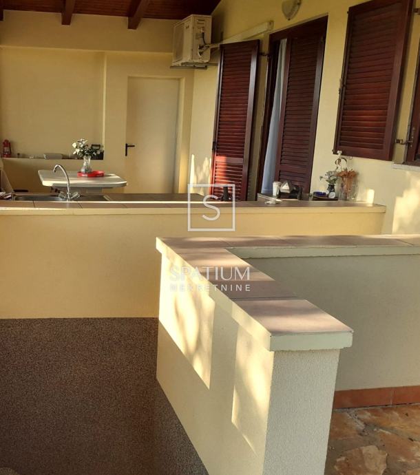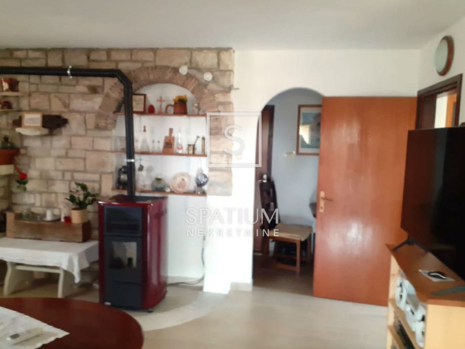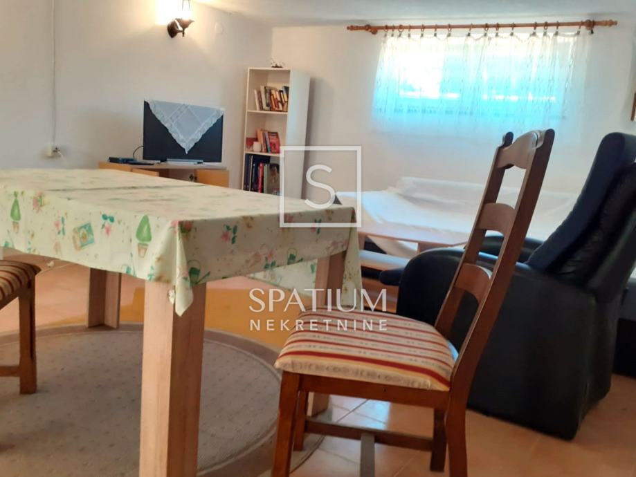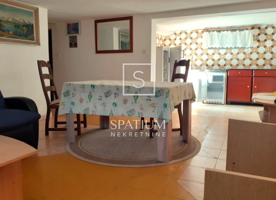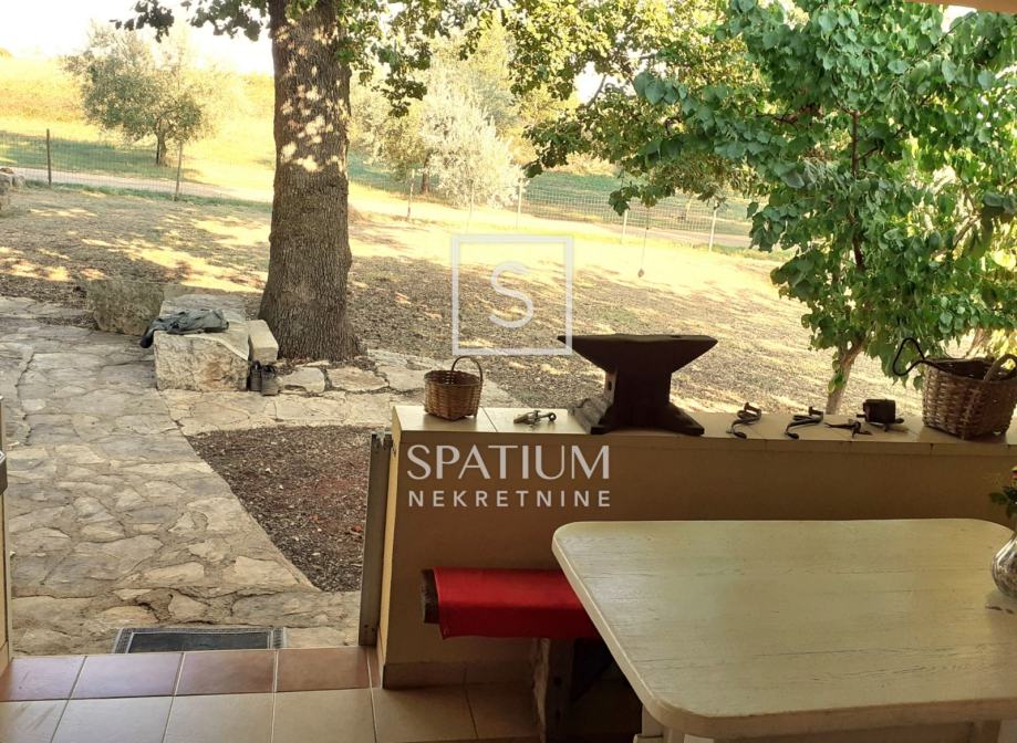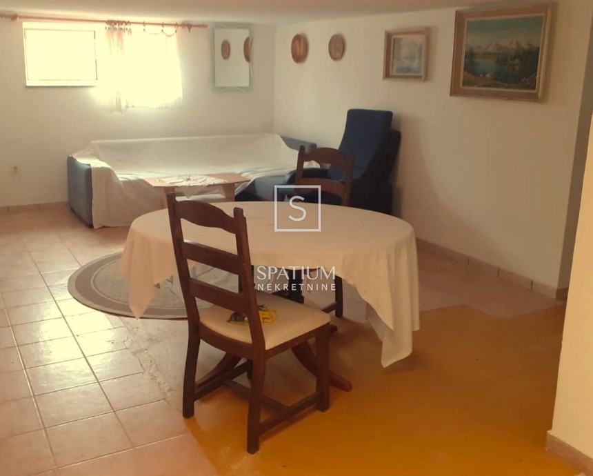 S terase s izlazi na lijepu okućnicu veličine 150 m2 na kojoj postoji mogućnost izgradnje manjeg objekta od 25 m2.