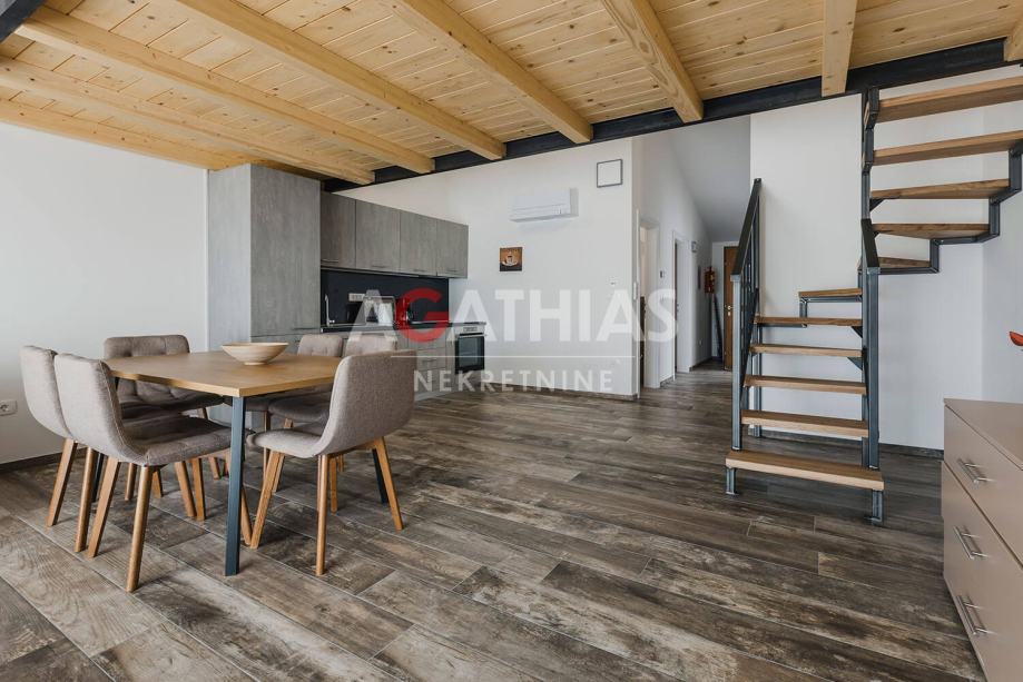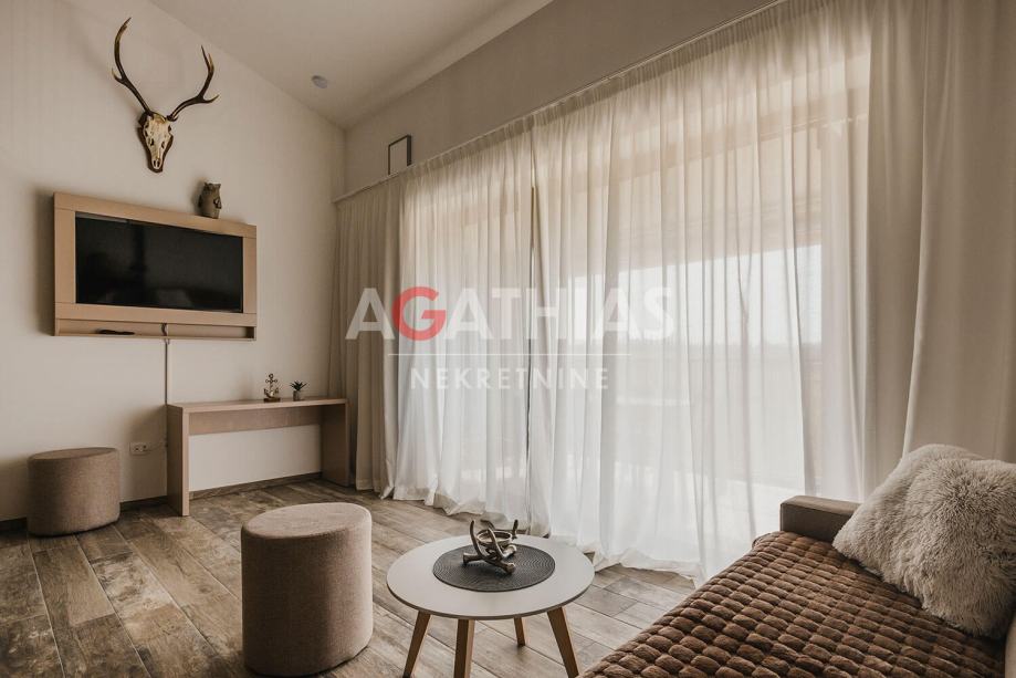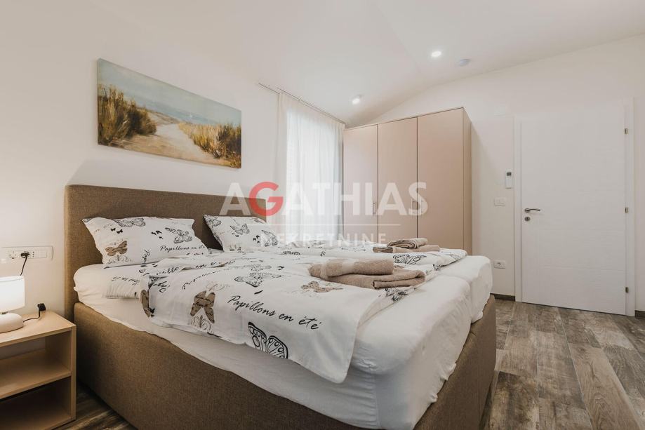 Stan se prodaje potpuno namješten, kategoriziran je za turistički najam i spreman za trenutačno useljenje ili nastavak uspješnog iznajmljivanja bez ikakvih dodatnih ulaganja. Kvalitetna gradnja i napredna termo i zvučna izolacija jamče udobnost i dugotrajnu vrijednost, dok njegovana okućnica sa zasađenim autohtonim biljem upotpunjuje mediteranski ugođaj.