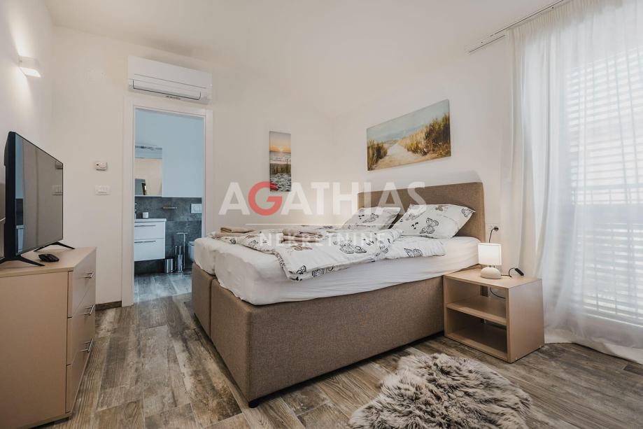 Za potrebe turističkog najma, stan je trenutno funkcionalno podijeljen u dva odvojena, elegantno uređena apartmana – svaki s vlastitim ulazom, kuhinjom, spavaćom sobom, kupaonicama, klimom i lođom. Ova fleksibilna prostorna organizacija omogućuje laku prenamjenu i povratak u izvorni raspored prema željama budućeg vlasnika.