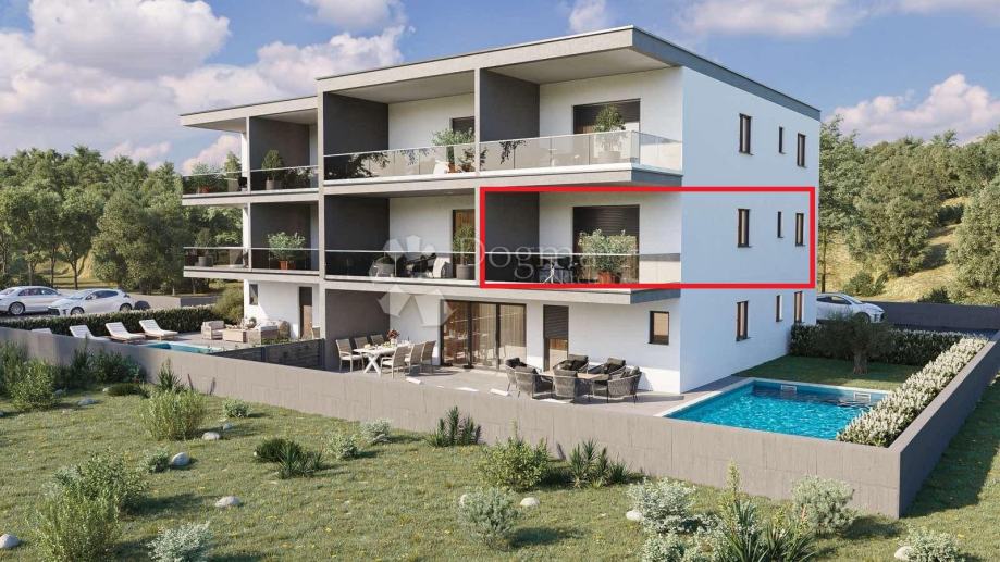 Stan raspolaže sa 78,07m2 neto stambene površine. Nalazi se na 1. katu. Sastoji se od ulaznog prostora, 2 spavaće sobe, kupaonice, WC-a, open space kuhinje, blagovaonice i dnevnog boravka sa izlazom na prostranu terasu. Uz stan dolazi i 1 parkirno mjesto.