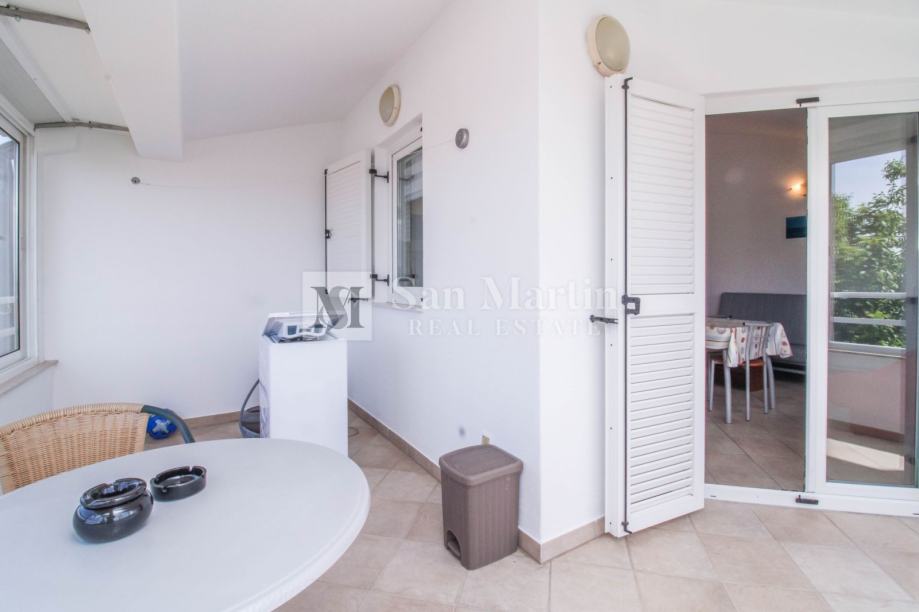 Posebnu vrijednost stana čini prostrana terasa ograđena staklenim stijenkama, koja omogućuje uživanje na svježem zraku tijekom cijele godine – bilo da pijete jutarnju kavu s pogledom na more ili večerate uz zalazak sunca.