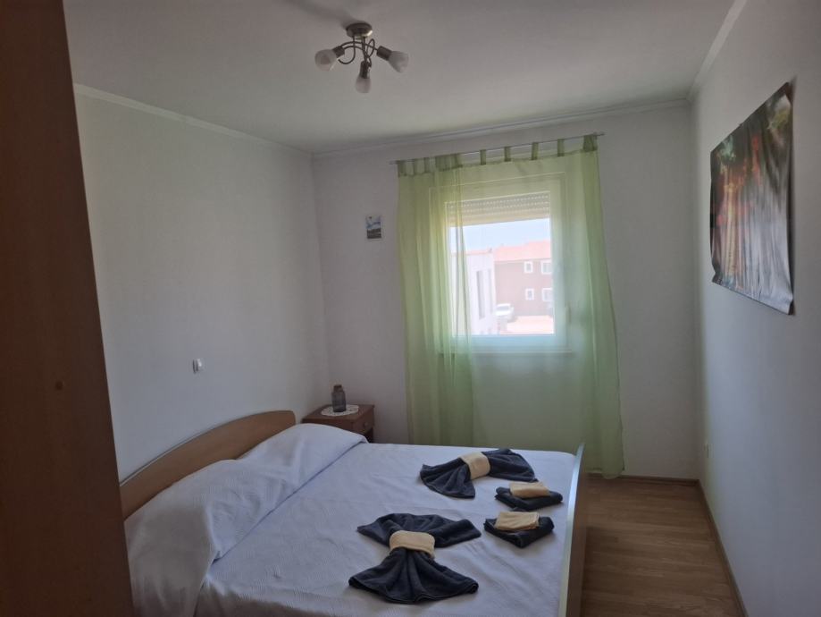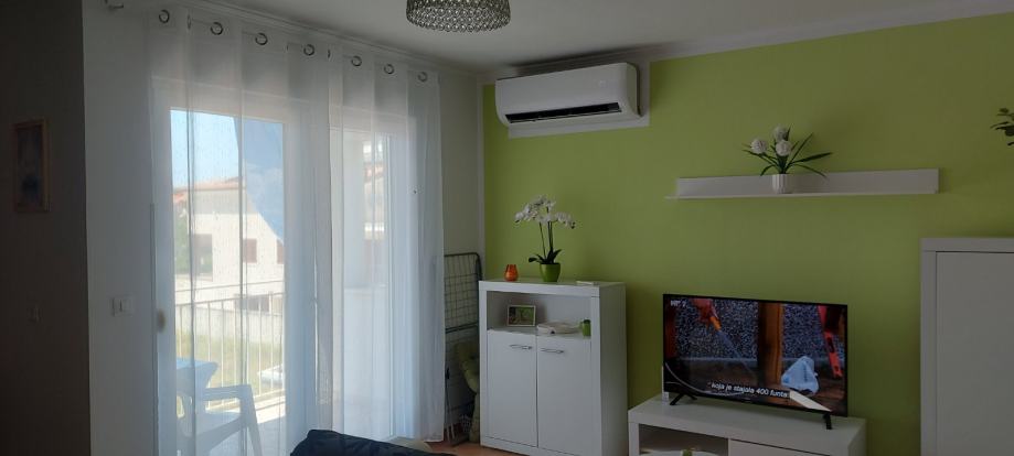 Iznajmljuje se uredan, namješten i potpuno opremljen stan u Novigradu, na mirnoj lokaciji, na kraći rok. Stan se nalazi 2km od mora i centra, a sastoji se od spavaće sobe, dnevnog boravka s kuhinjom, hodnika, kupatila, terase. Rezervirano jedno nenatkriveno mjesto za parking. Oprema: klima, perilica rublja, perilica suđa, tv. Predviđeno je za boravak jedne ili dvije osobe. Cijena mjesečnog najma 550eur plus režije. Moguce dogovoriti i dugorocni najam (cijena u sezoni po dogovoru). Polog se placa prije useljenja 1000 eur. Za više informacija i dogovor oko razgledavanja slobodno se javite, u popodnevnim satima, na mob.092/2843-663.