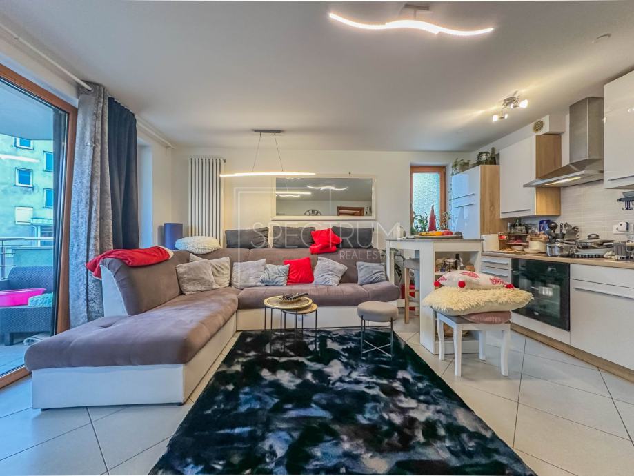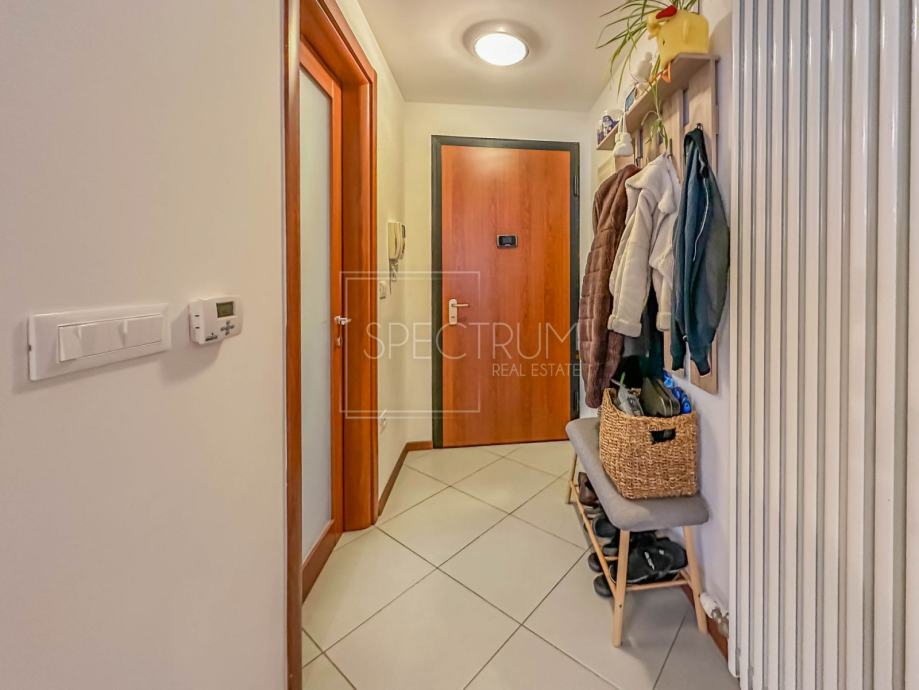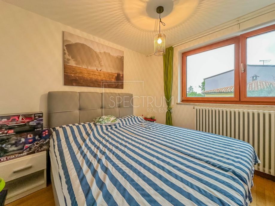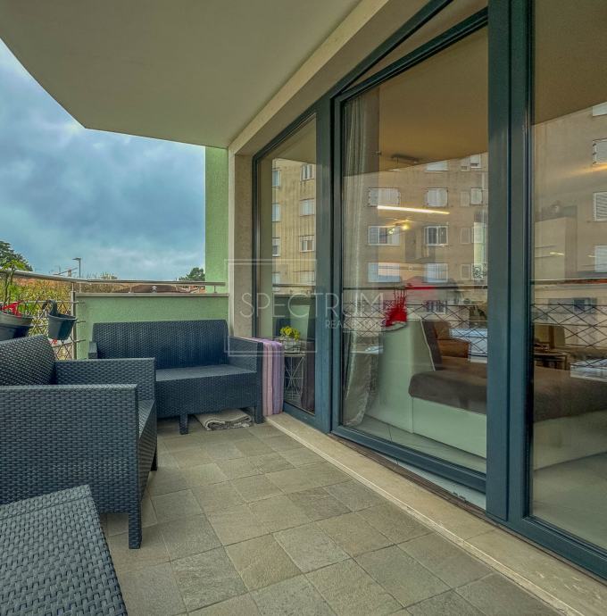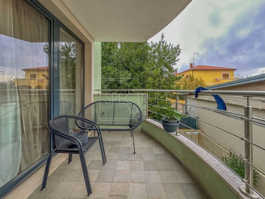 Stan se nalazi na 1.katu zgrade, a površina stana iznosi 70.68 m2. Stan se sastoji od ulaznog hodnika, dnevnog boravka sa kuhinjom i blagovaonicom open space koncepta, još jednog manjeg hodnika, 2 spavaće sobe, kupaonice, praonice, wc-a i 2 natkrivena balkona. Na jedan natkriveni balkon se dolazi iz dnevnog boravka, a na drugi natkriveni balkon se dolazi iz jedne spavaće sobe. Grijanje u stanu regulirano je putem klima uređaja i dizalica topline. Stan se prodaje namješten. U vlasništvu stana je i garažno parkirno mjesto.