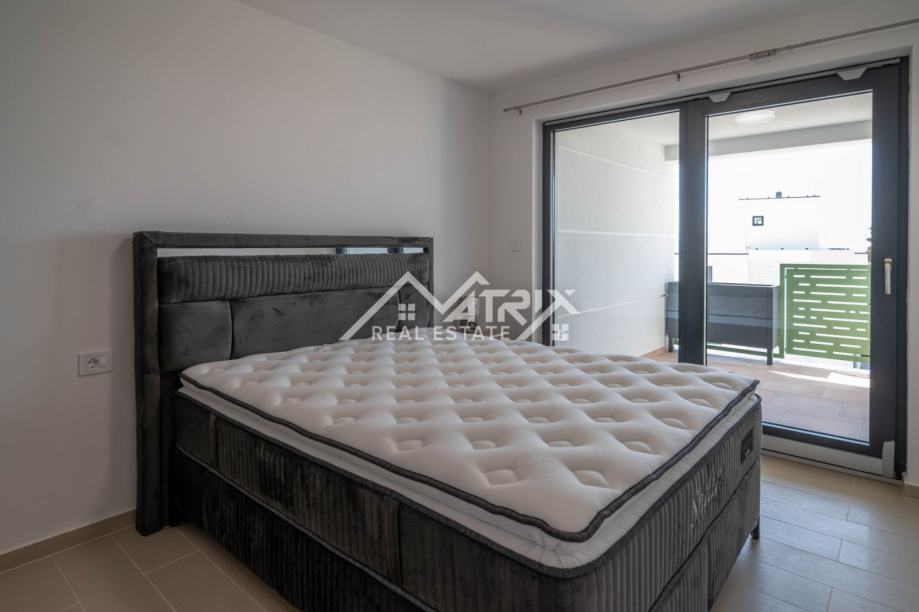 Unutar stana ćete pronaći dvije spavaće sobe, svaka s vlastitim balkonom. Ovaj dodatni prostor na balkonima omogućava vam da uživate u jutarnjoj kavi ili večernjem zalasku sunca dok udišete svježi morski zrak. Osim toga, sve sobe su klimatizirane, pružajući vam udobnost tijekom svih godišnjih doba.