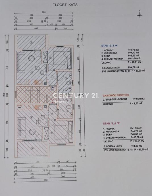 Ukupna površina stana iznosi 31,80 m2, te se sastoji od: